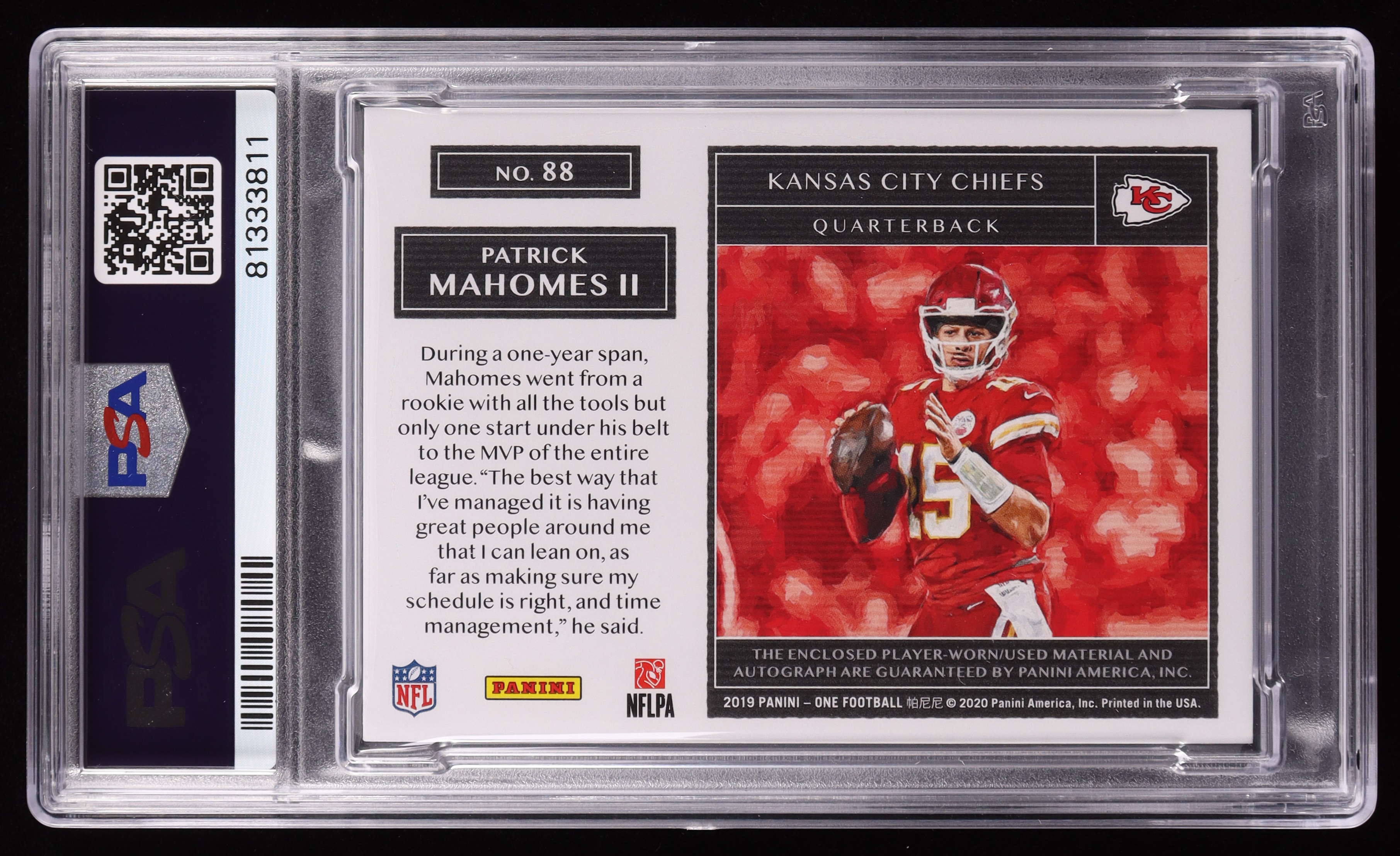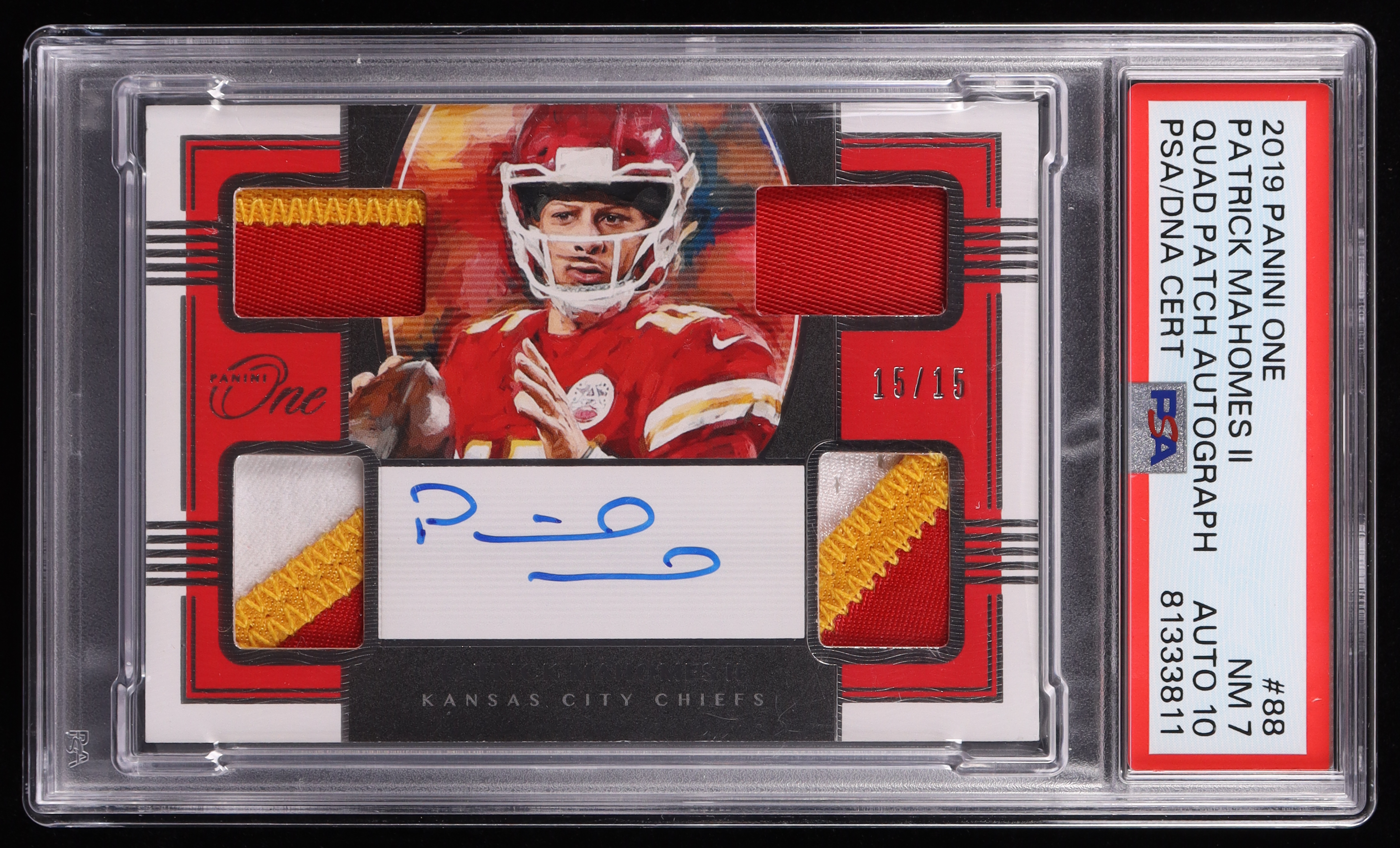 Patrick Mahomes II 2019 Panini One #88 Jersey Autograph #15/15 (PSA 7 | Autograph Graded 10)