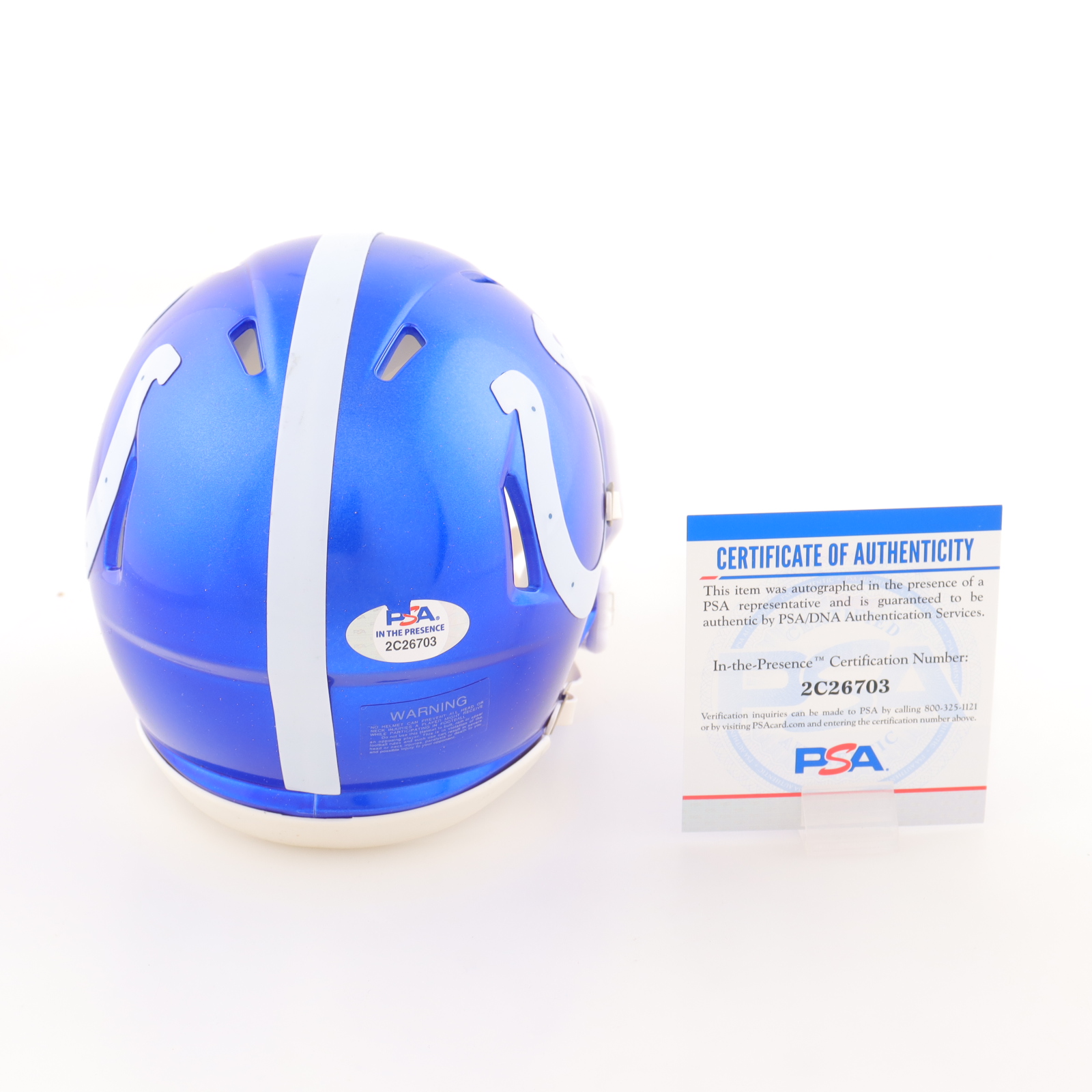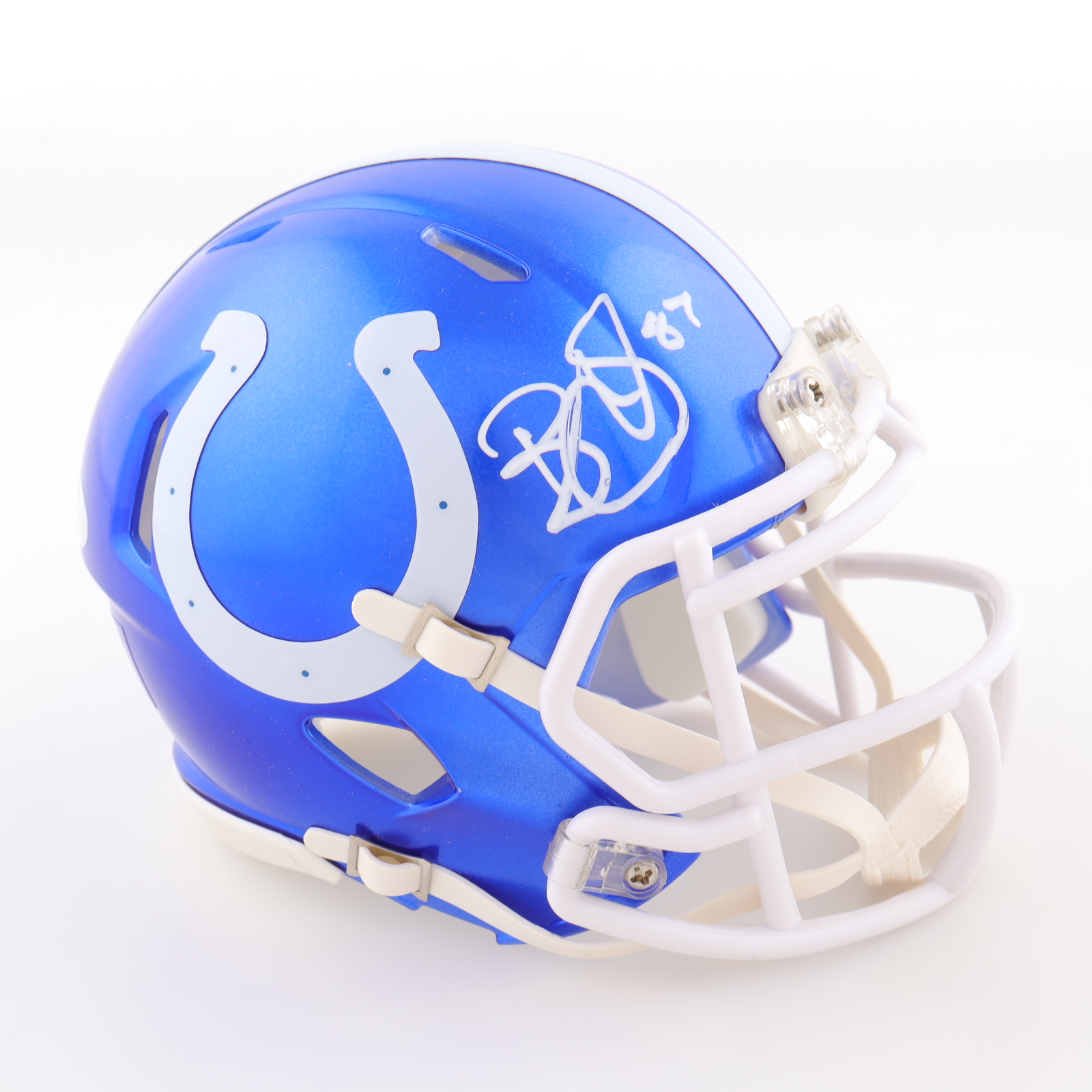 Riddell Indianapolis Colts flash alternate speed mini helmet. Hand-signed by Reggie Wayne.