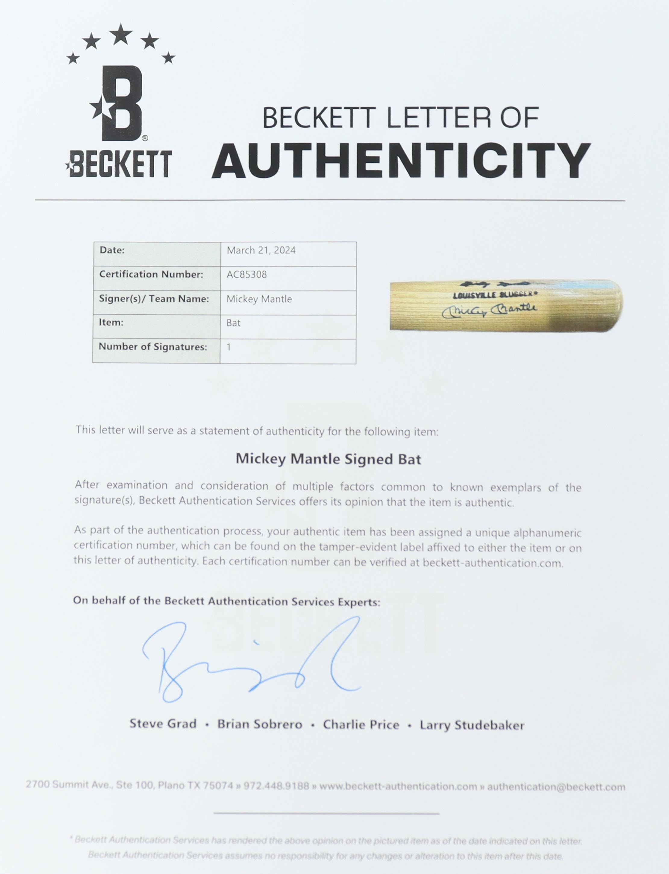 Mickey Mantle Signed Hillerich & Bradsby Player Model Baseball Bat (Beckett)