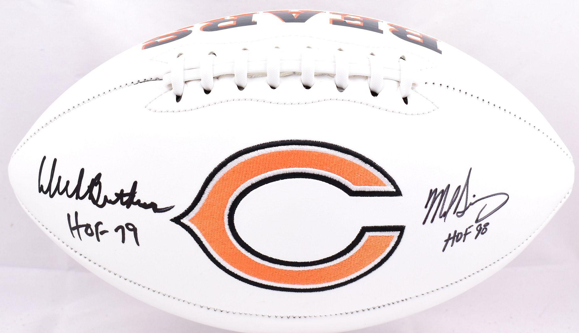 Mike Singletary & Dick Butkus Signed Bears Logo Football Inscribed "HOF 98" & "HOF 79" (Beckett)