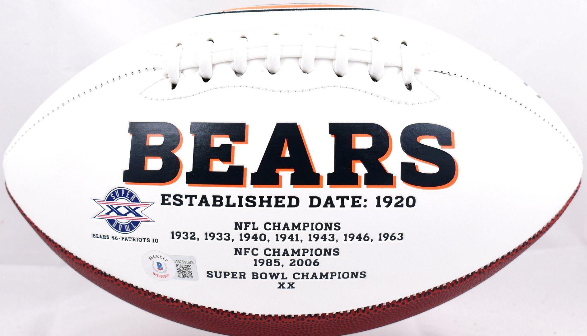 Chicago Bears Logo Football has been hand-signed and inscribed by Mike Singletary (HOF) and Dick Butkus (HOF, D. 2023).