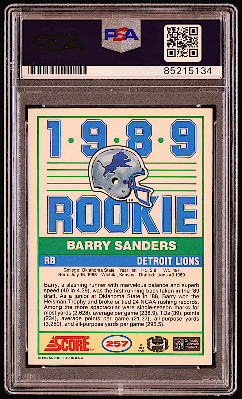 Barry Sanders Signed 1989 Score #257 RC (PSA | Auto 10)