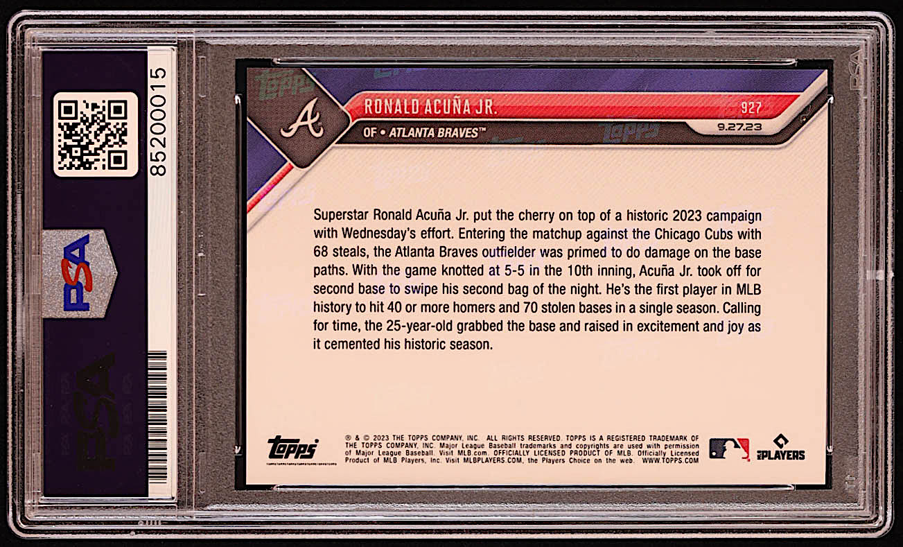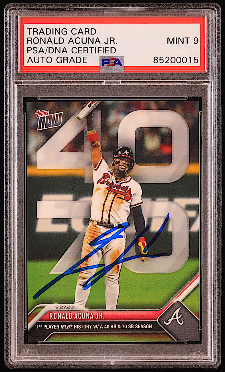 Ronald Acuna Jr. Signed 2023 Topps Now #927 (PSA | Auto 9)