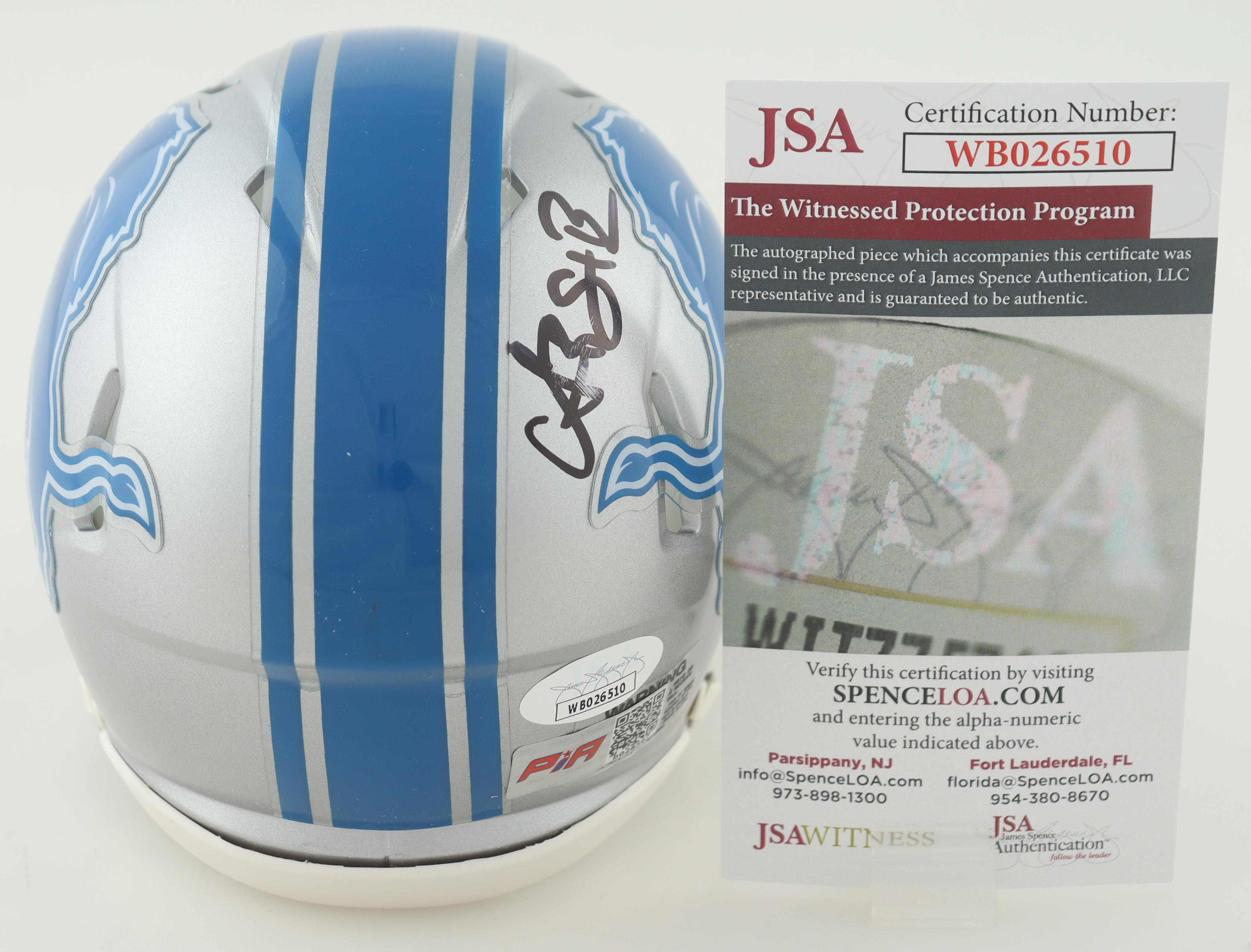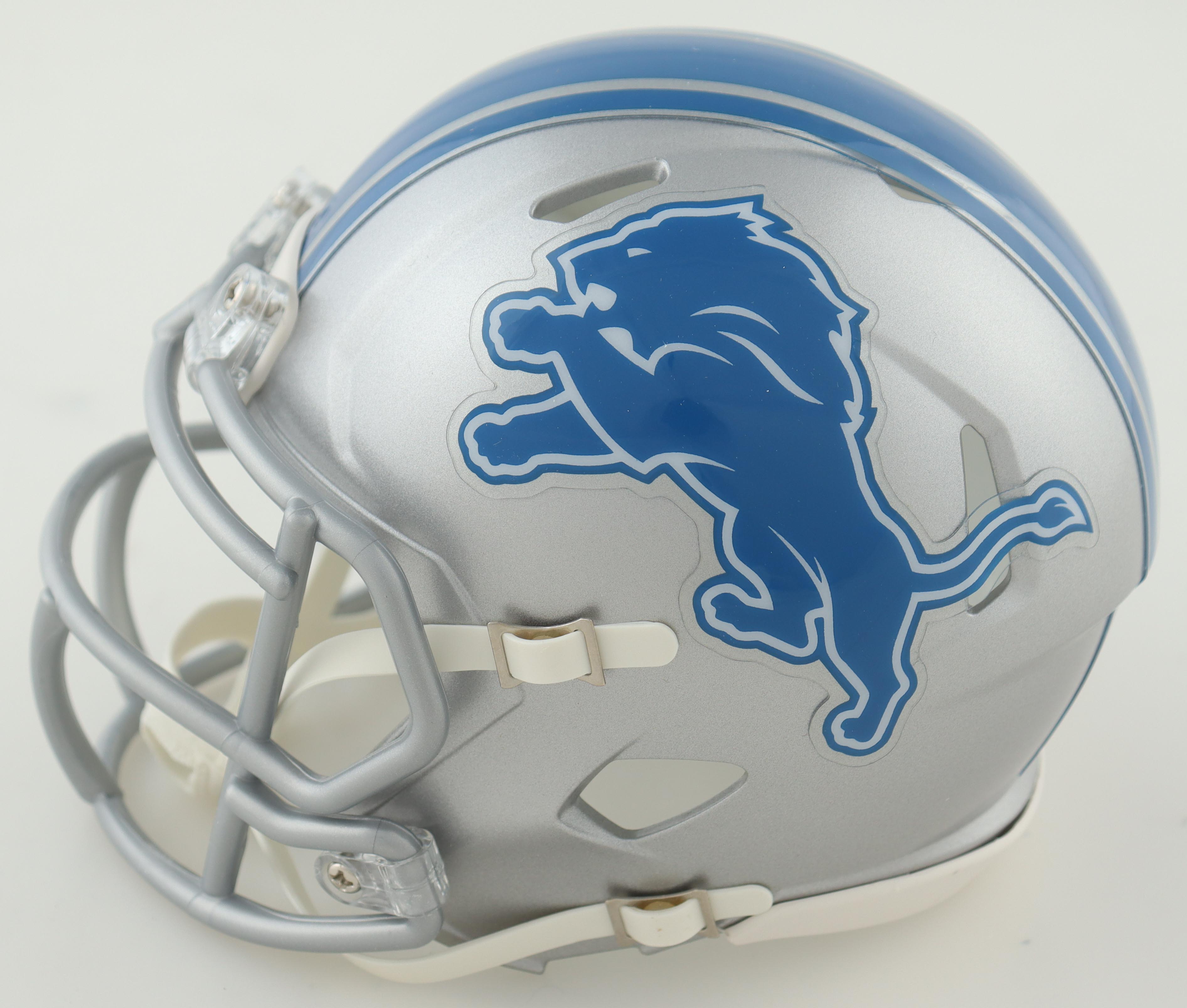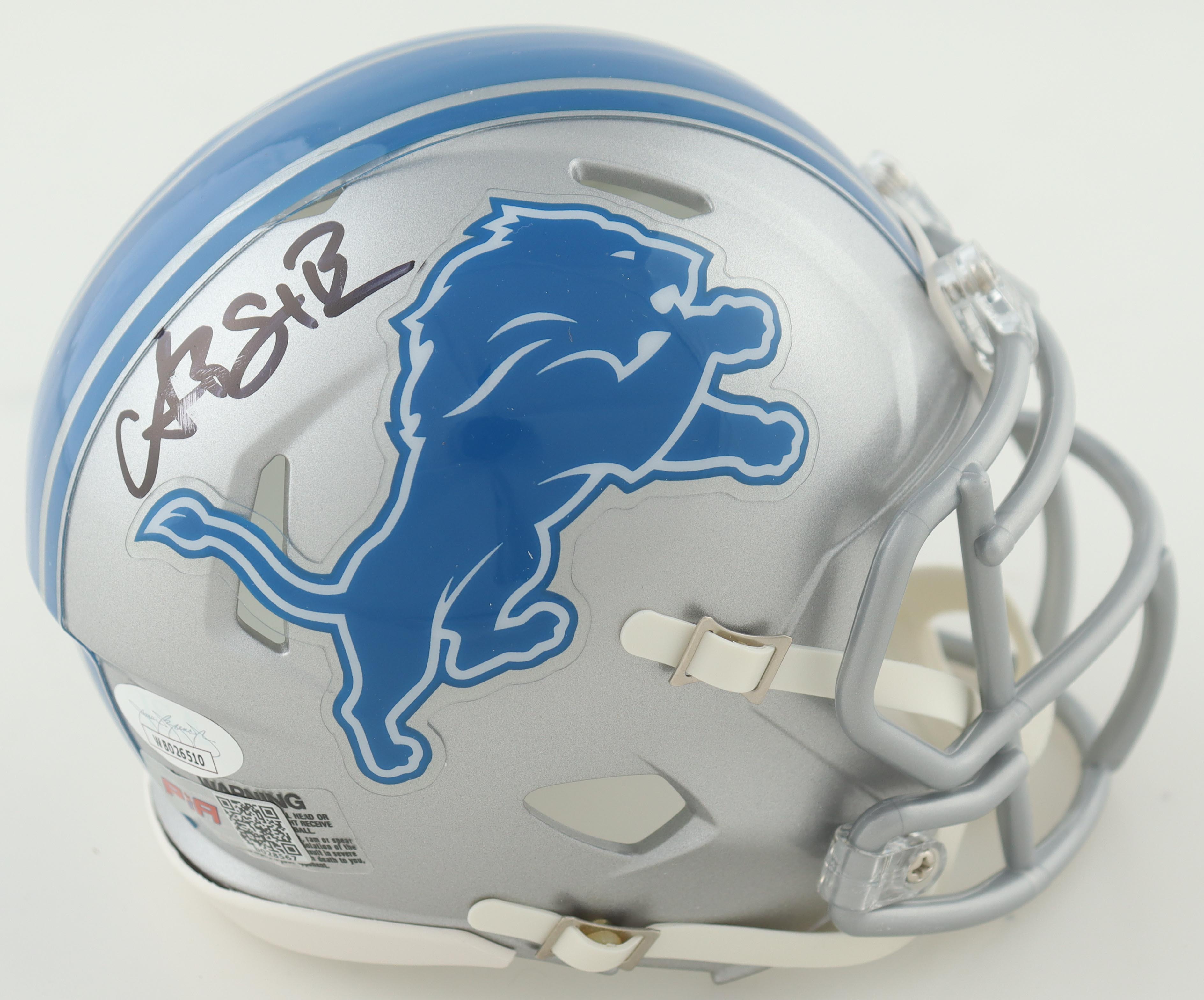 Riddell Detroit Lions Flash Alternate Speed mini helmet. Hand-signed and Amon-Ra St. Brown. Please note the signature is smudged.