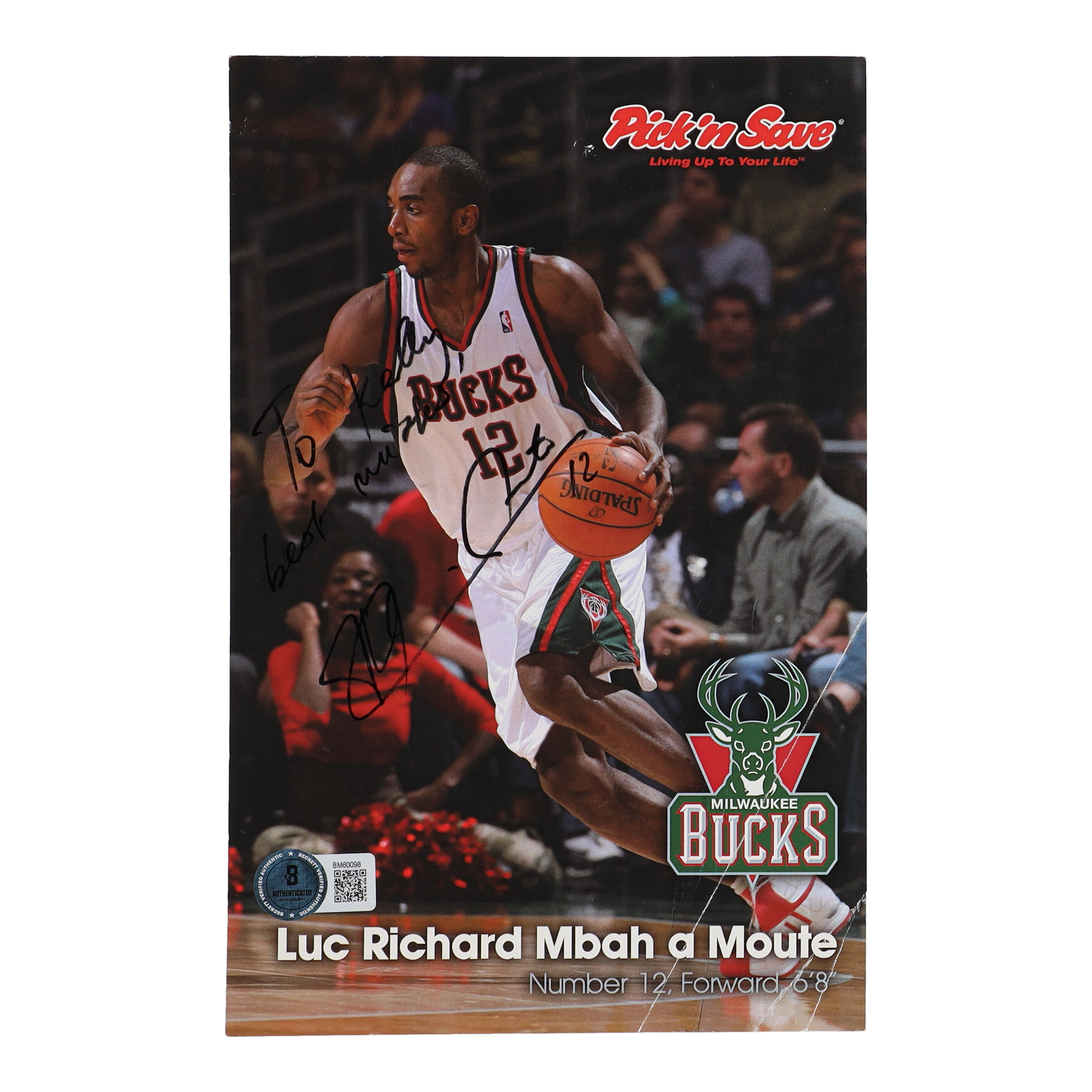 Luc Mbah a Moute Signed Bucks 5.5x8.5 Flyer Inscribed "Best Wishes" (Beckett)