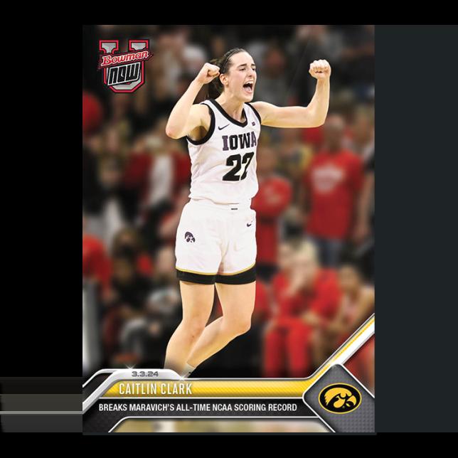 Caitlin Clark 2023-24 Bowman University Now / Breaks Maravich All-Time NCAA Scoring Record #61 RC