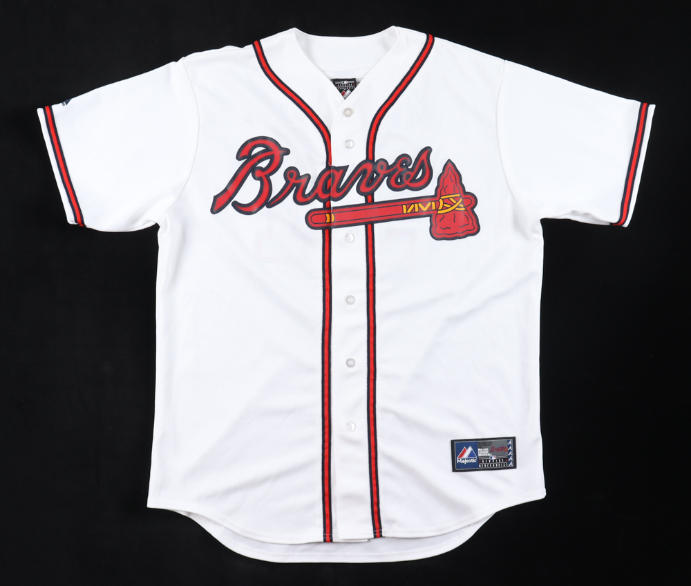 Majestic jersey with everything sewn own, size L. Hand-signed by Greg Maddux (Atlanta Braves, HOF).