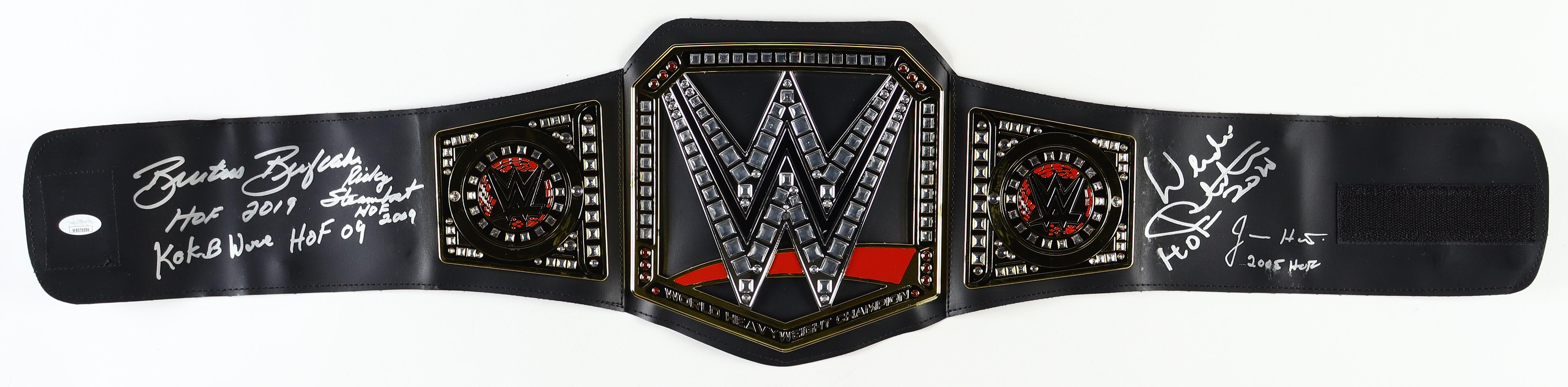 WWE Replica Heavyweight Championship Belt Signed By (5) with Wendi Richter, Ricky Steamboat, Jimmy Hart, Brutus Beefcake, and KoKo B. Ware with Hall of Fame Inscriptions (JSA)