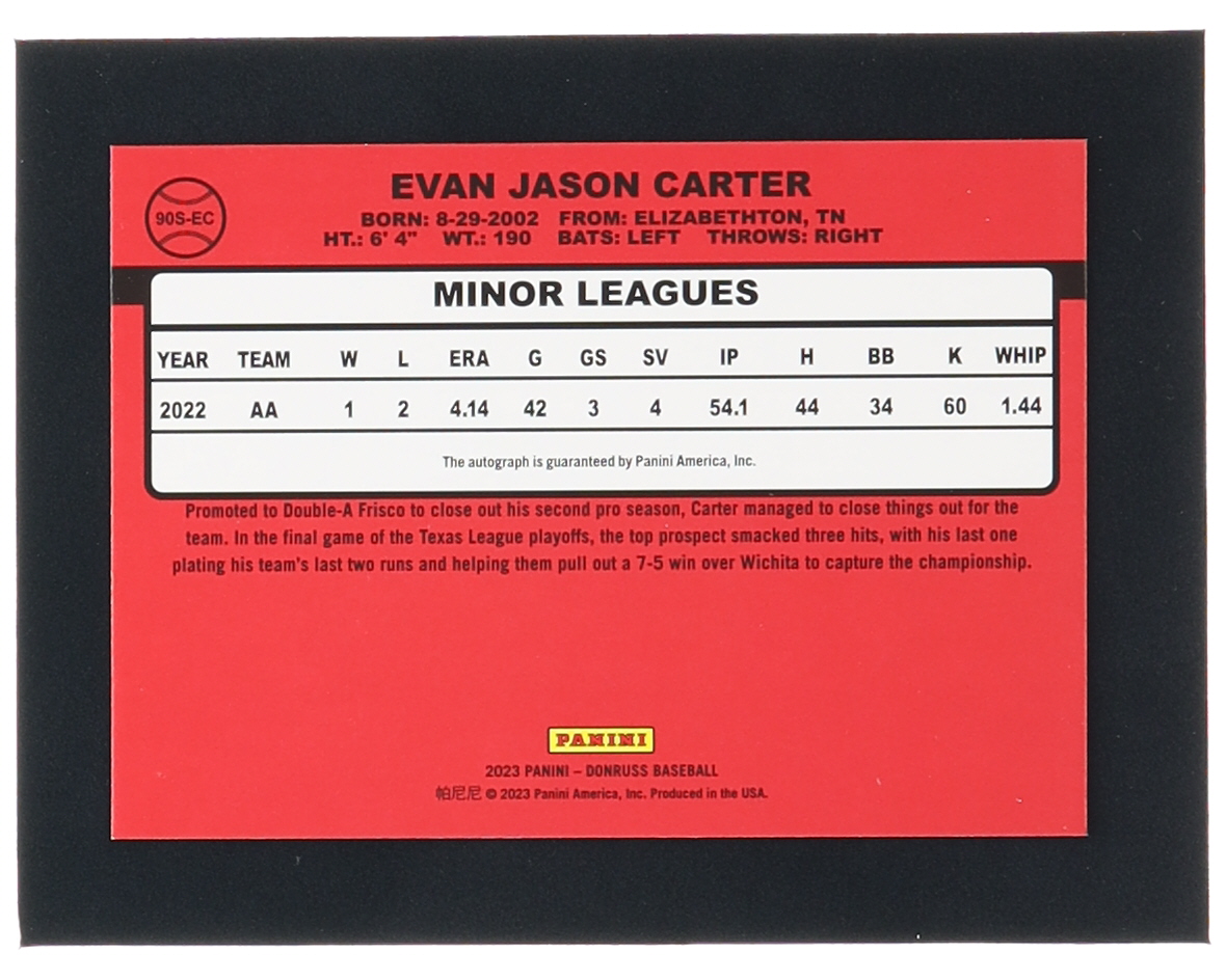 Evan Carter 2023 Donruss Retro '90 Signatures Holo #7 RC