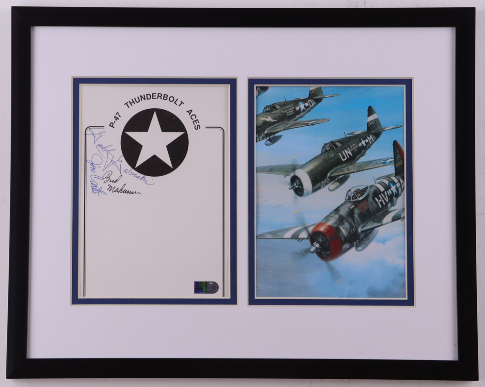 Gabby Gabreski, Bud Mahurin & Jim Carter Signed Republic P-47 Thunderbolt Aces Custom Framed Postcard Display (AIV)