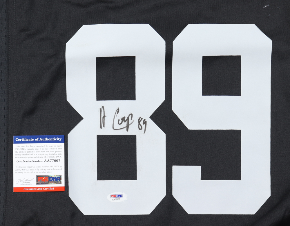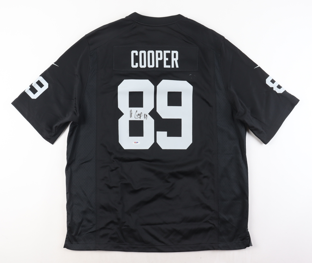 Nike jersey. Everything is printed on, size XXL. Hand-signed by Amari Cooper (Oakland Raiders). Please note, there are stains on the front number, reverse number, and residue around the hologram.