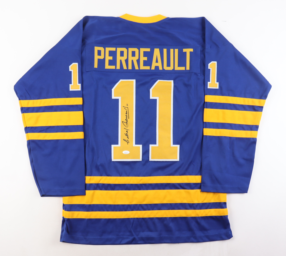 Custom jersey. Everything is sewn on, size XL. Hand-signed by Gilbert Perreault (HOF).