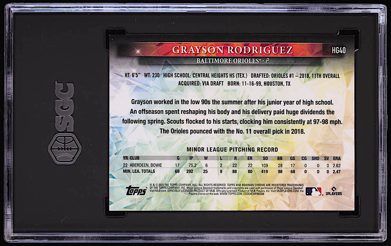 Grayson Rodriguez 2023 Topps Chrome Hidden Gems #HG40 RC / Bowman Chrome (SGC 10)