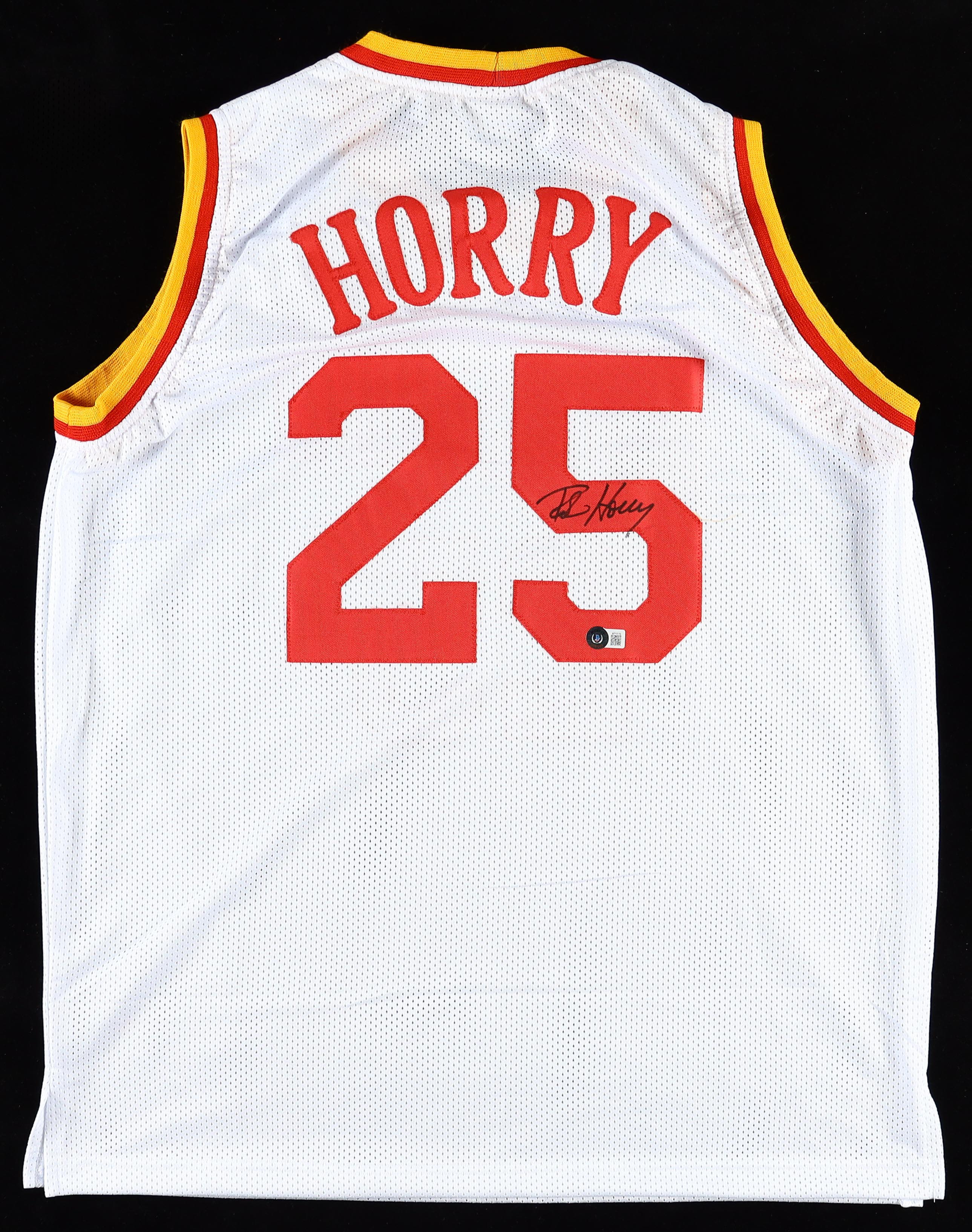 Custom jersey with everything sewn on, size XL. Hand-signed by Robert Horry.