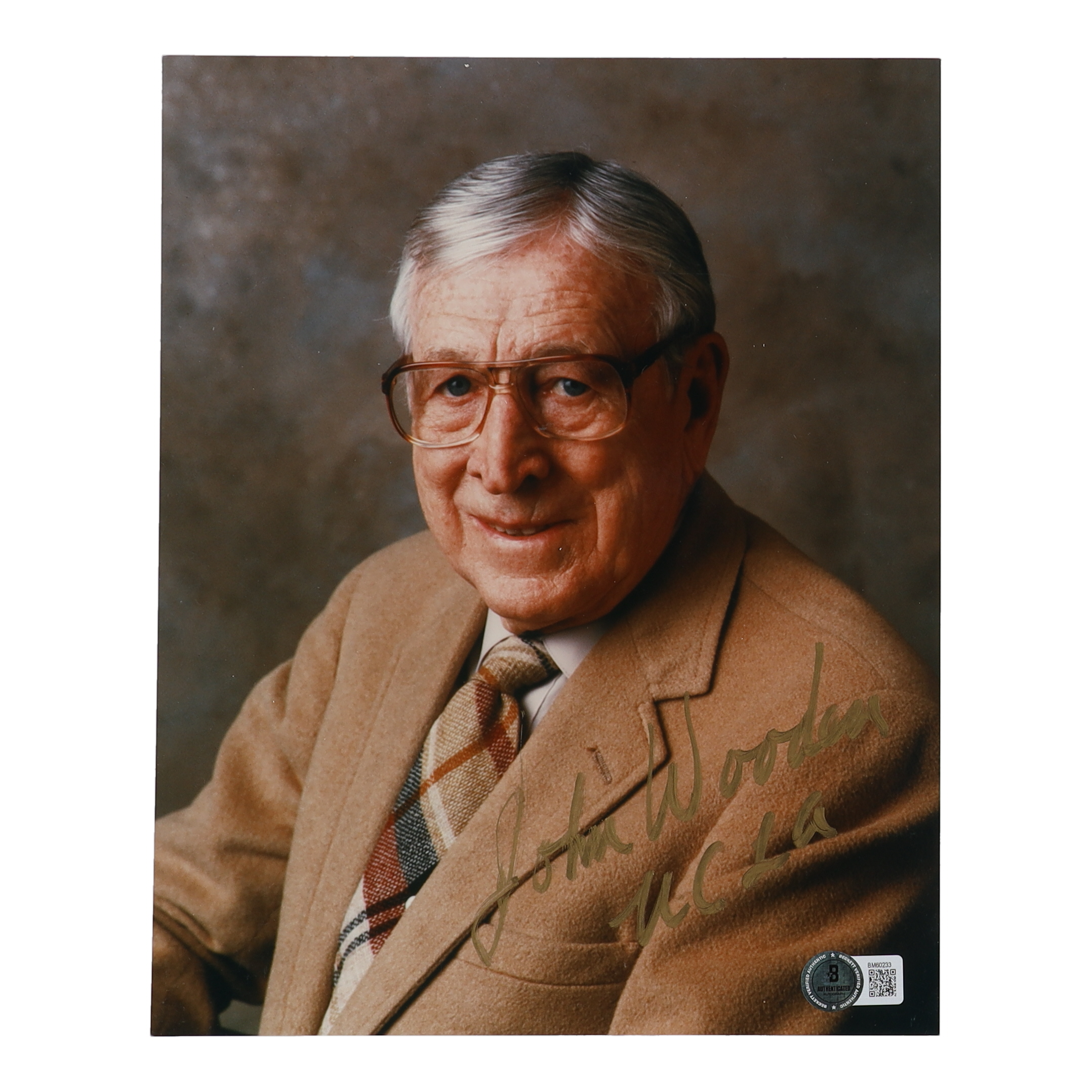 John Wooden Signed 8x10 Photo Inscribed "UCLA" (Beckett)