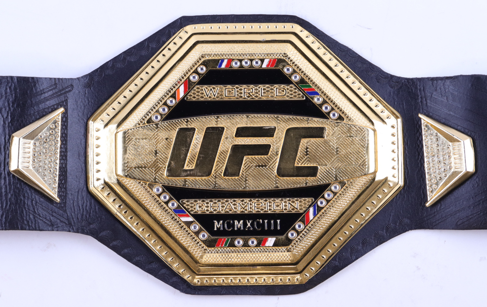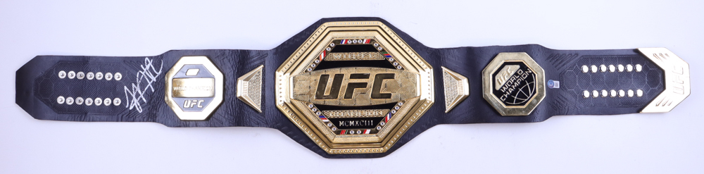UFC World Championship full-size replica belt has been hand-signed by Khabib Nurmagomedov. Please see photos for condition of belt and signature.