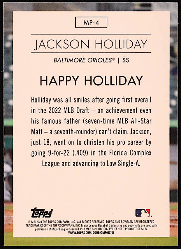 Jackson Holliday 2023 Bowman Chrome Modern Prospect #MP4 RC
