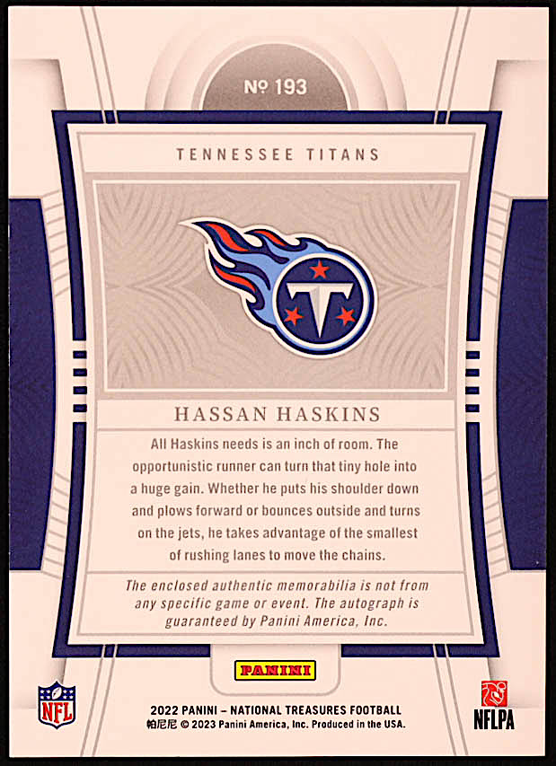 Hassan Haskins 2022 Panini National Treasures Purple #193 JSY AU RC #15/49