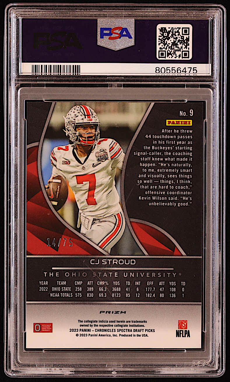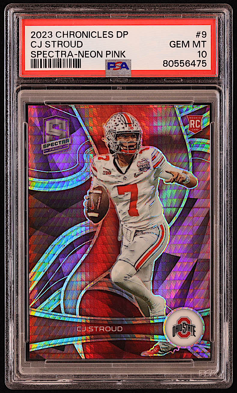 CJ Stroud 2023 Panini Chronicles Draft Picks Spectra Neon Pink #9 RC #14/75 (PSA 10)