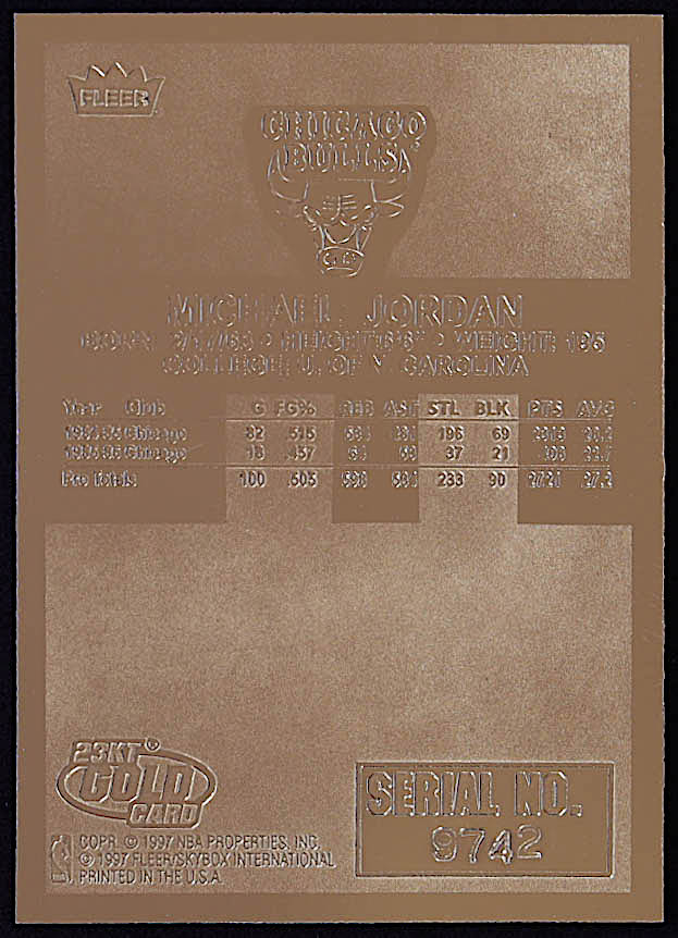 Michael Jordan 1997 Fleer Premier Signature Series Holo Prism Refractor 23Kt Gold Card