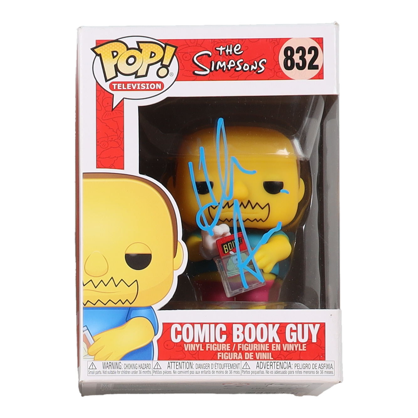 Funko pop! vinyl figure measures approximately 4" tall and the packaging has been hand-signed by Hank Azaria.