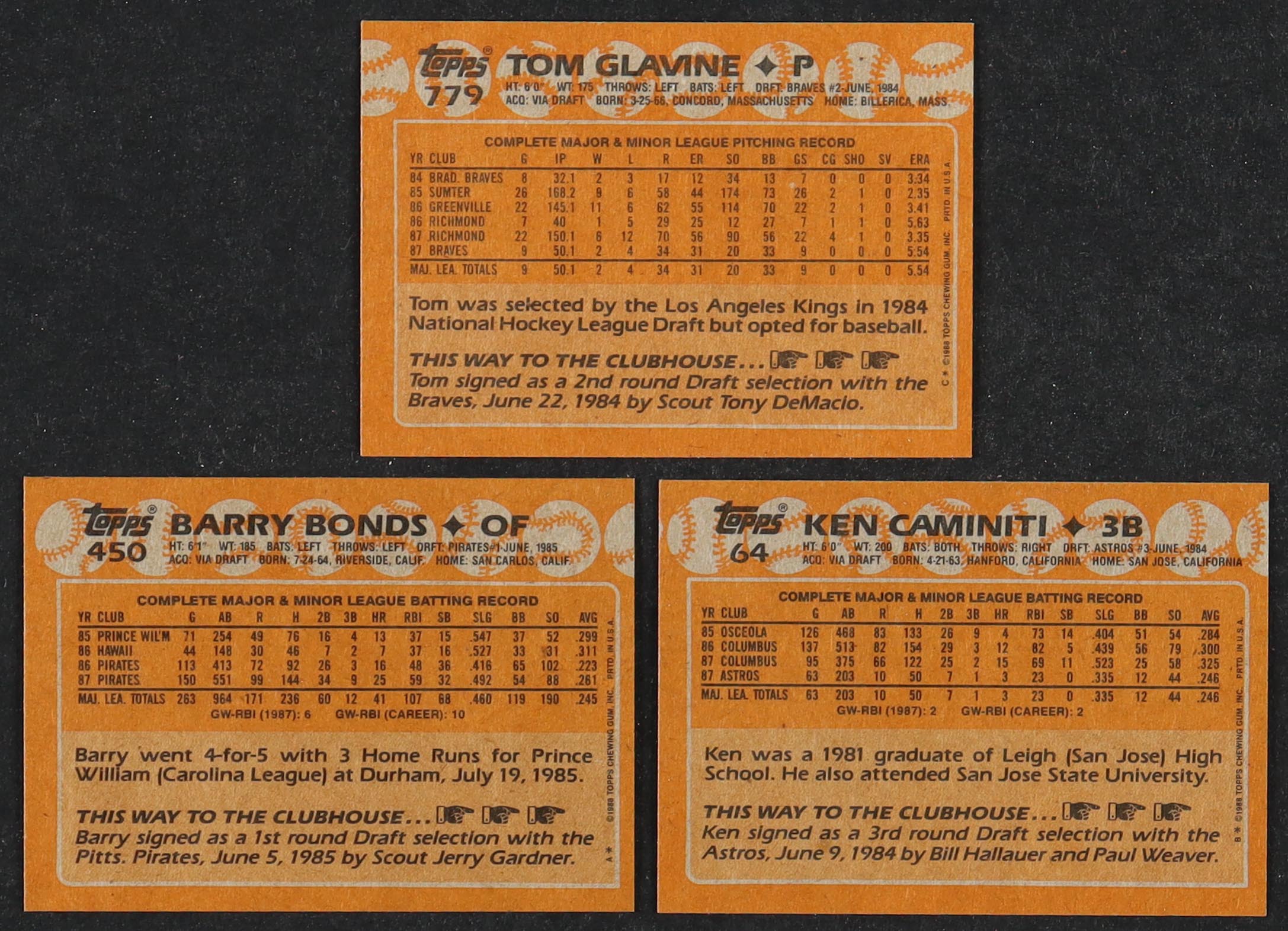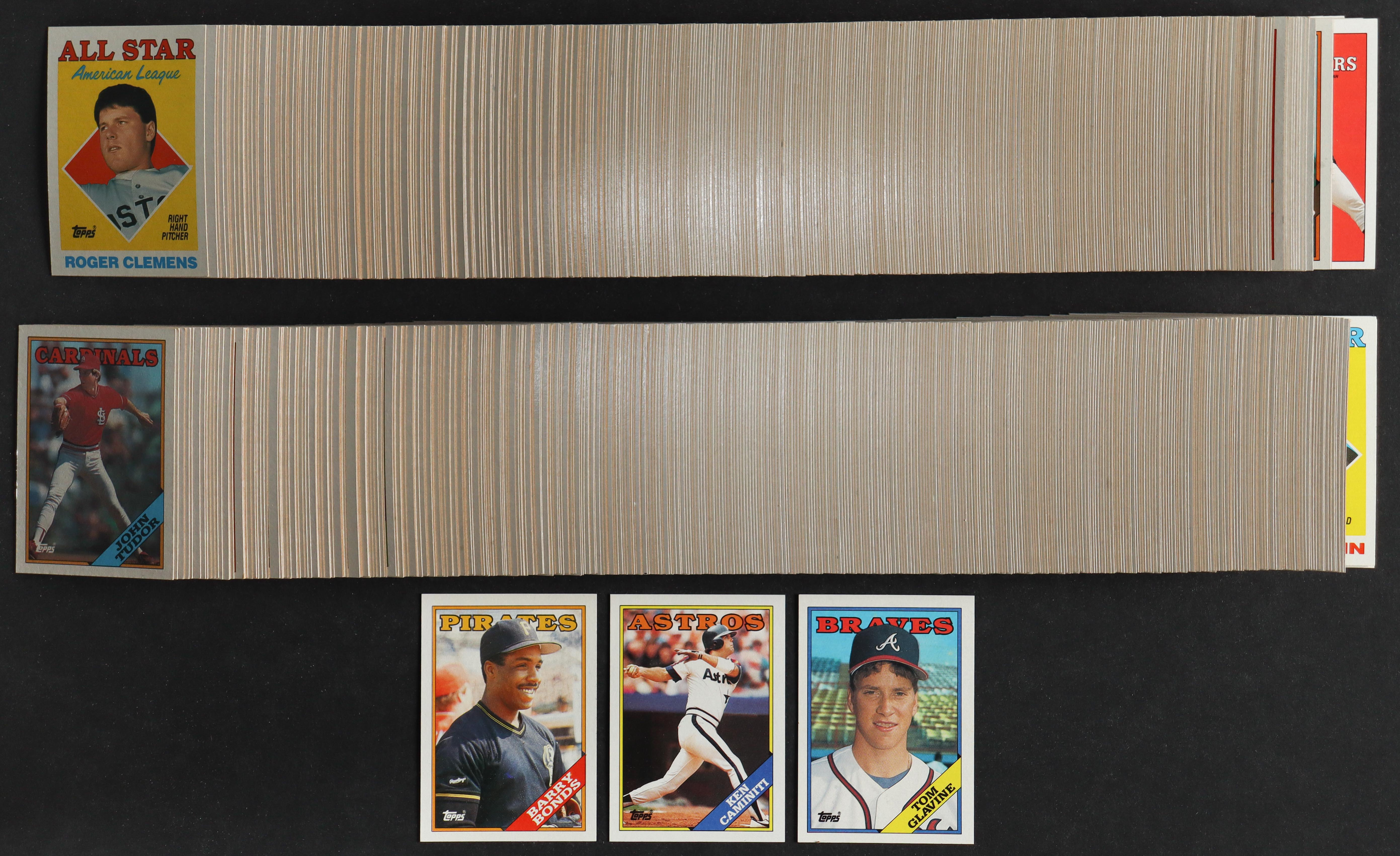1988 Topps Baseball Complete Set of (792) Cards with Tom Glavine #779 RC, Ken Caminiti #64 RC, Barry Bonds #450