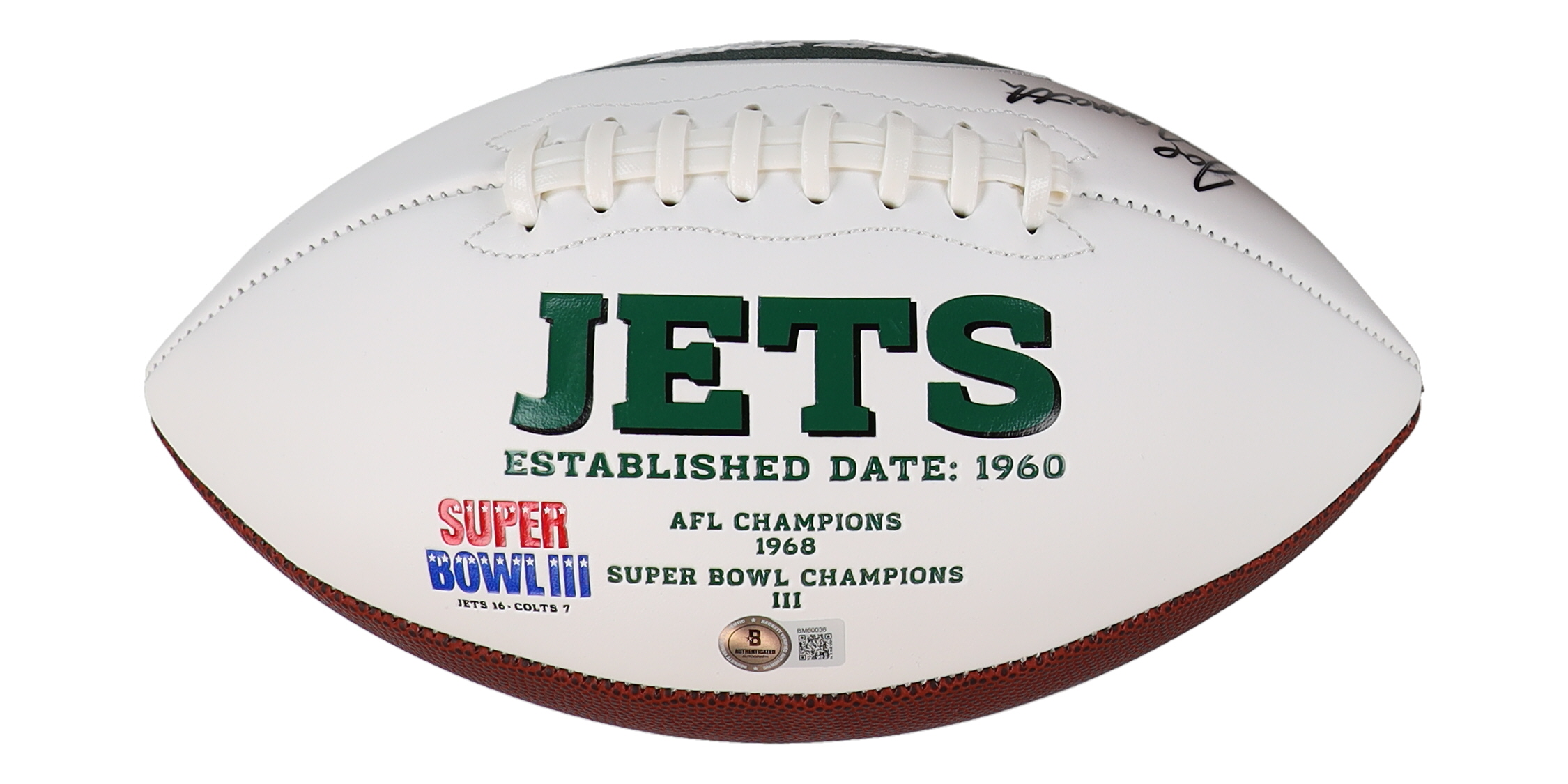 New York Jets logo football has been hand-signed by Joe Namath (HOF).