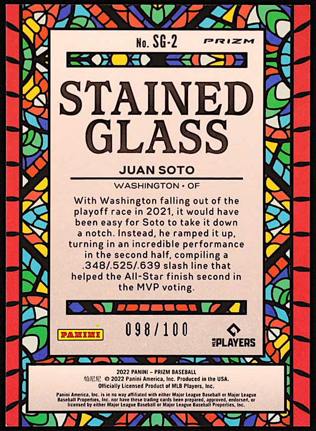 Juan Soto 2022 Panini Prizm Stained Glass Prizms Neon Orange #2 #98/100