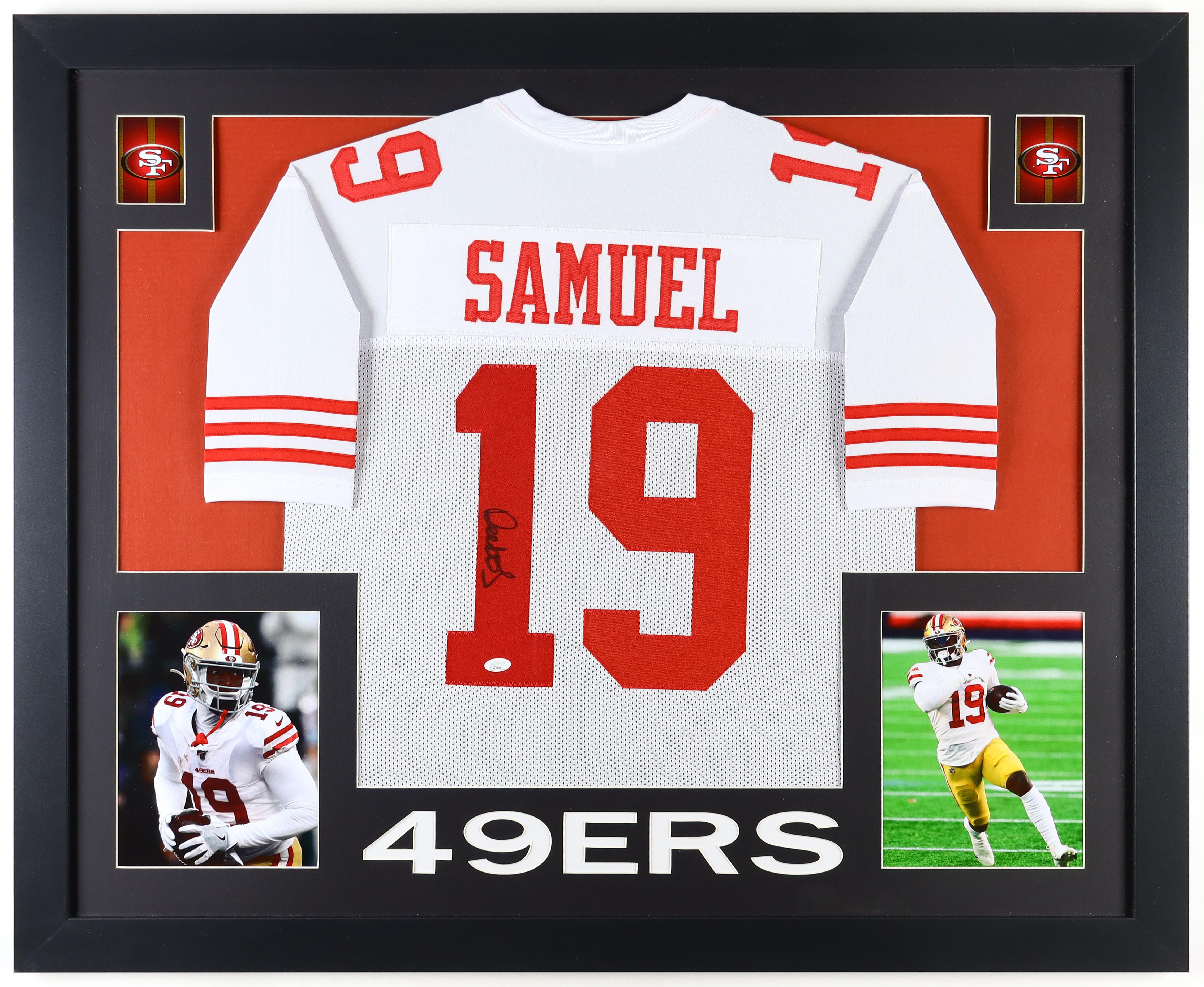 Custom frame measures 36" x 44" in size and features a jersey hand-signed by Deebo Samuel.