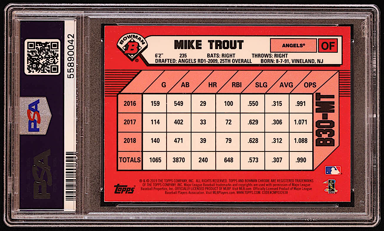 Mike Trout 2019 Bowman Chrome 30th Anniversary #B30MT (PSA 7)