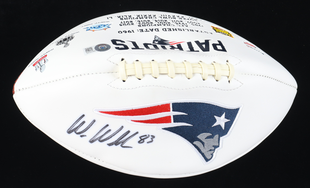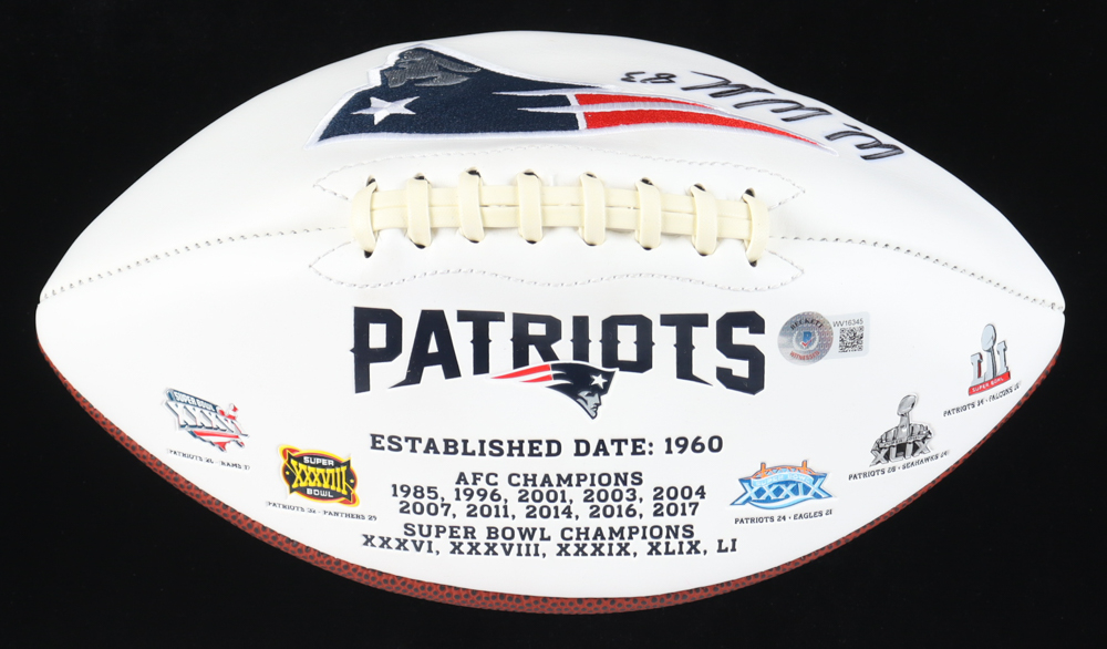 New England Patriots logo football. Hand-signed by Wes Welker. Please note, this football does not hold air.