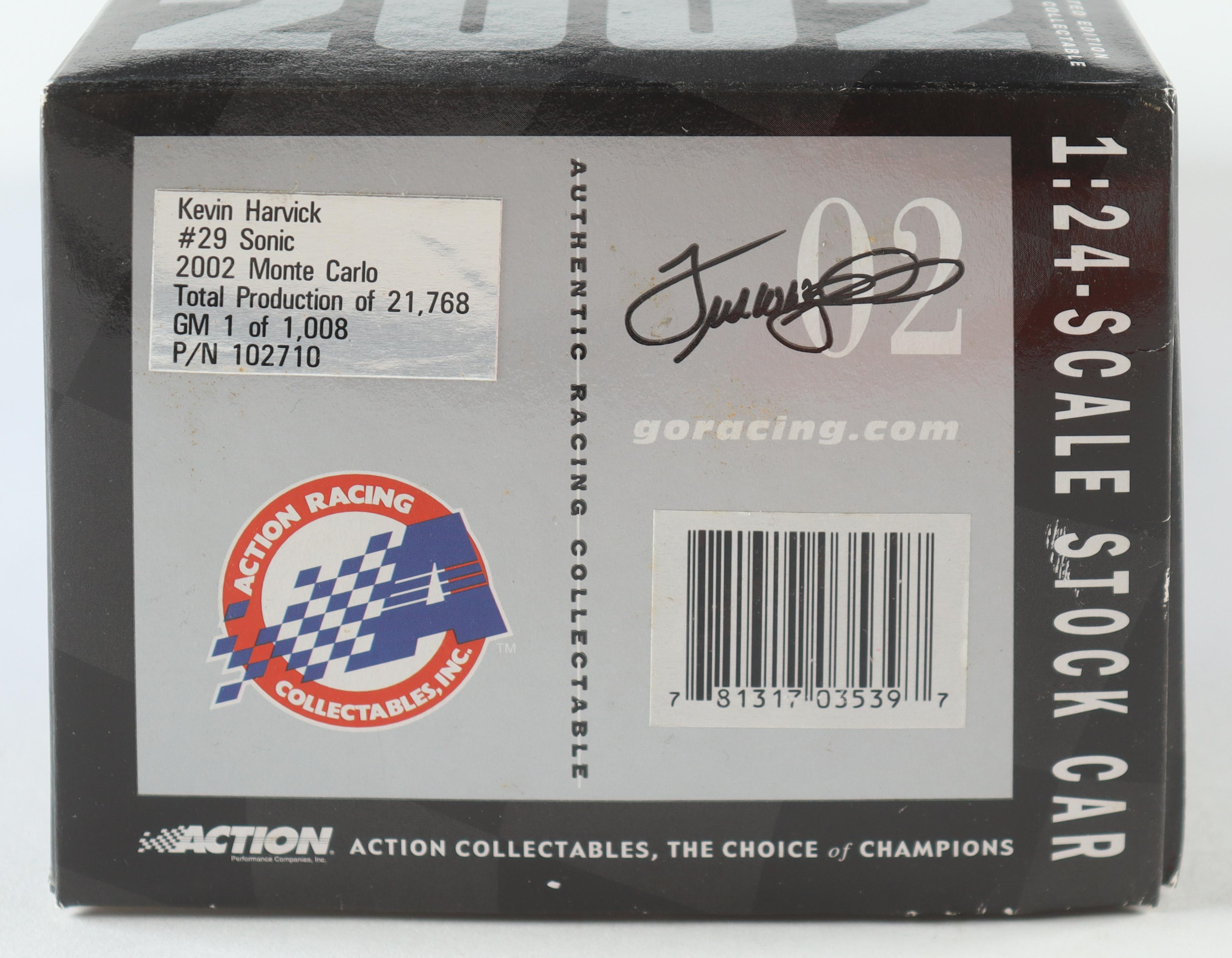 Action Racing Collectables #29 Sonic 2002 Monte Carlo 1:24 Die-cast Car. Hand-signed by Kevin Harvick. The car is a limited edition #/21,768.