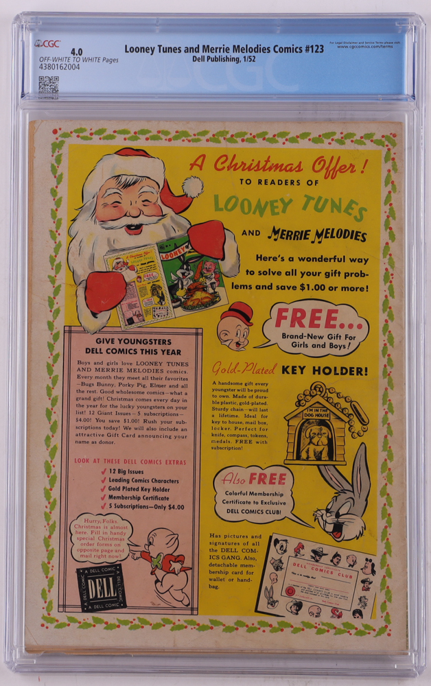 January 1952 "Looney Tunes And Merrie Melodies" Issue #123 Dell comic book has been graded (CGC) 4.0. Please see photos for more details regarding the condition of the comic.