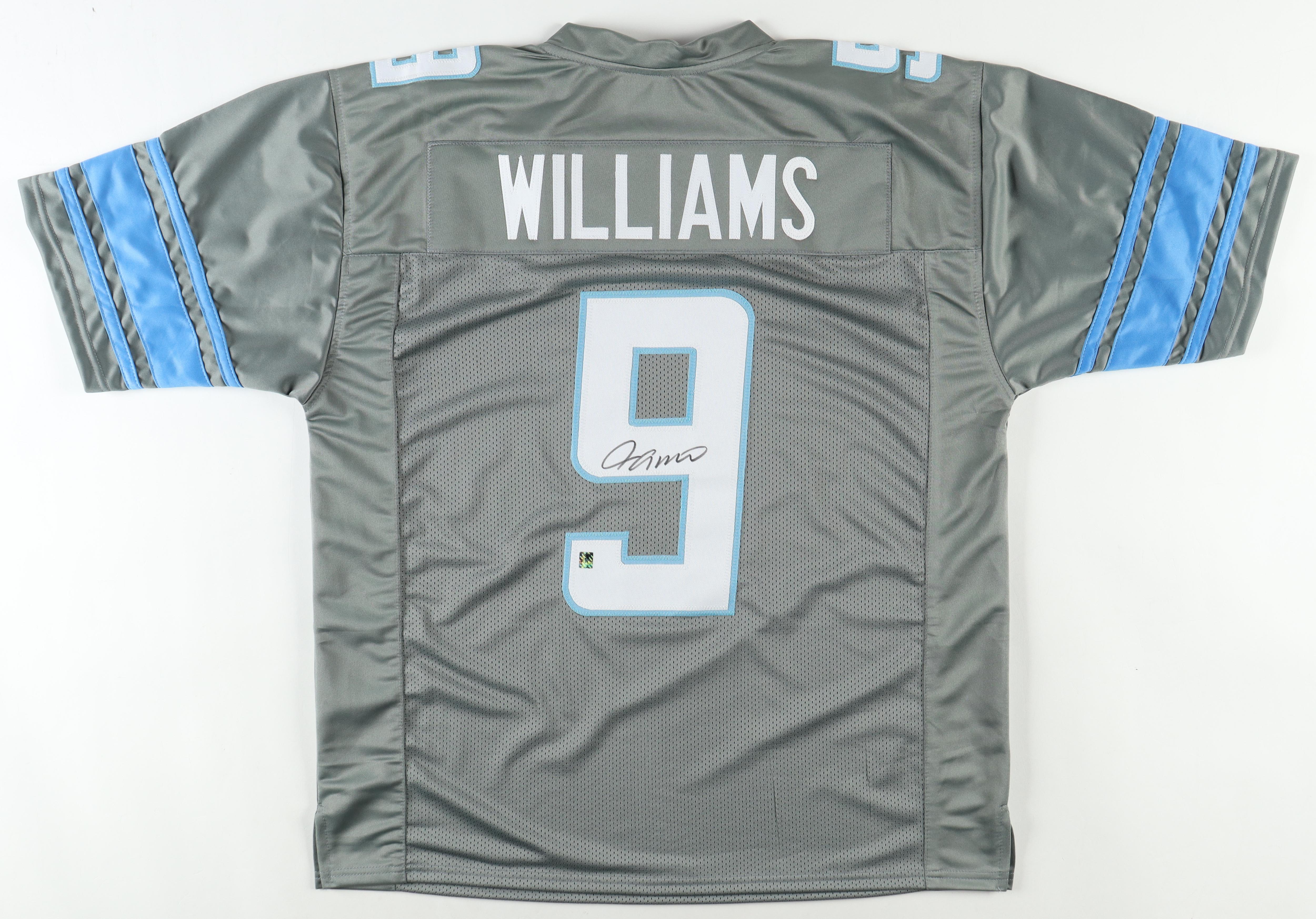 Custom jersey. Everything is sewn on, size XL. Hand-signed by Jameson Williams.
