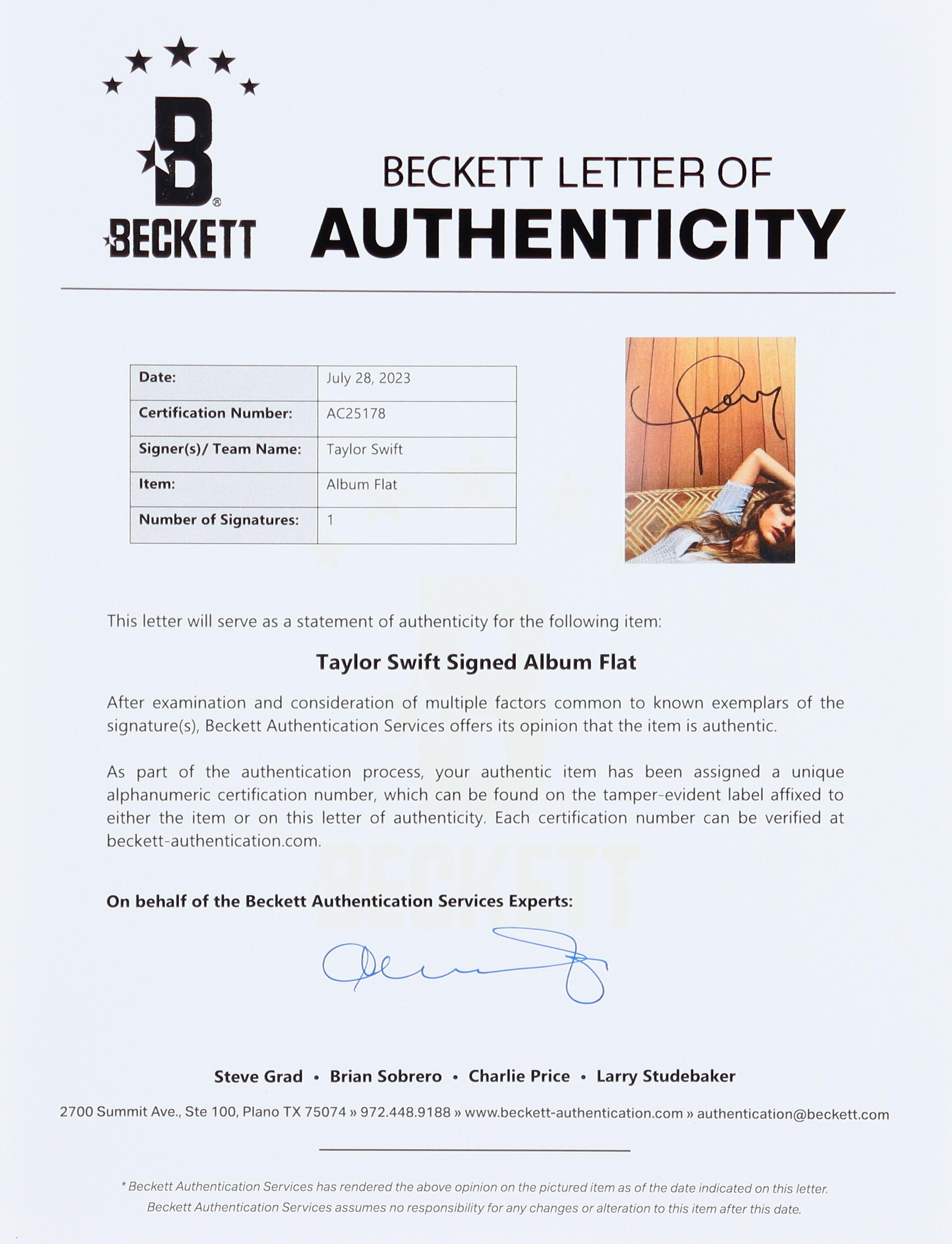 Taylor Swift Signed "Midnights" Album Sleeve Insert With Vinyl Record Album (Beckett)