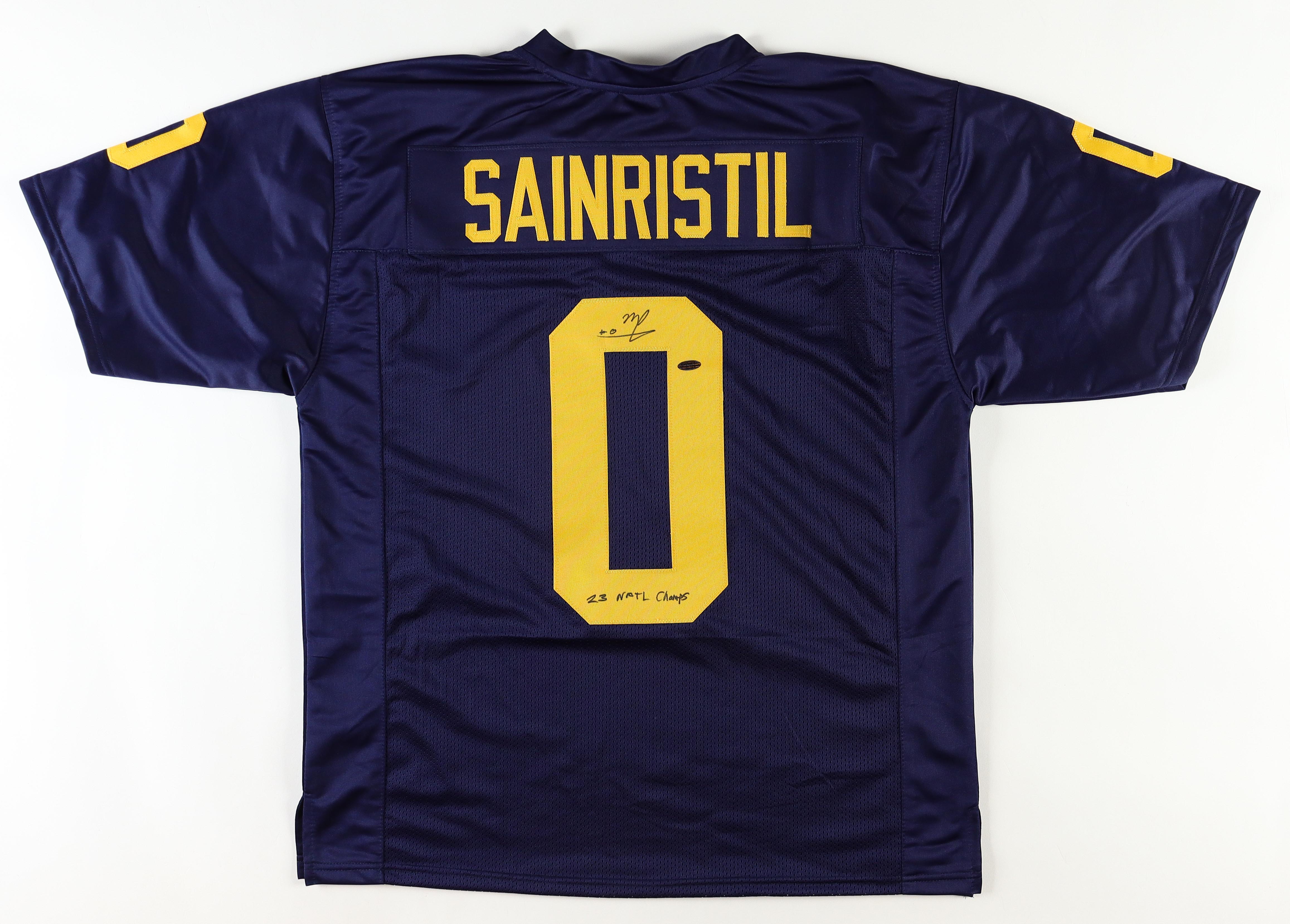 Custom jersey. Everything sewn on, size XL. Hand-signed by Mike Sainristil.