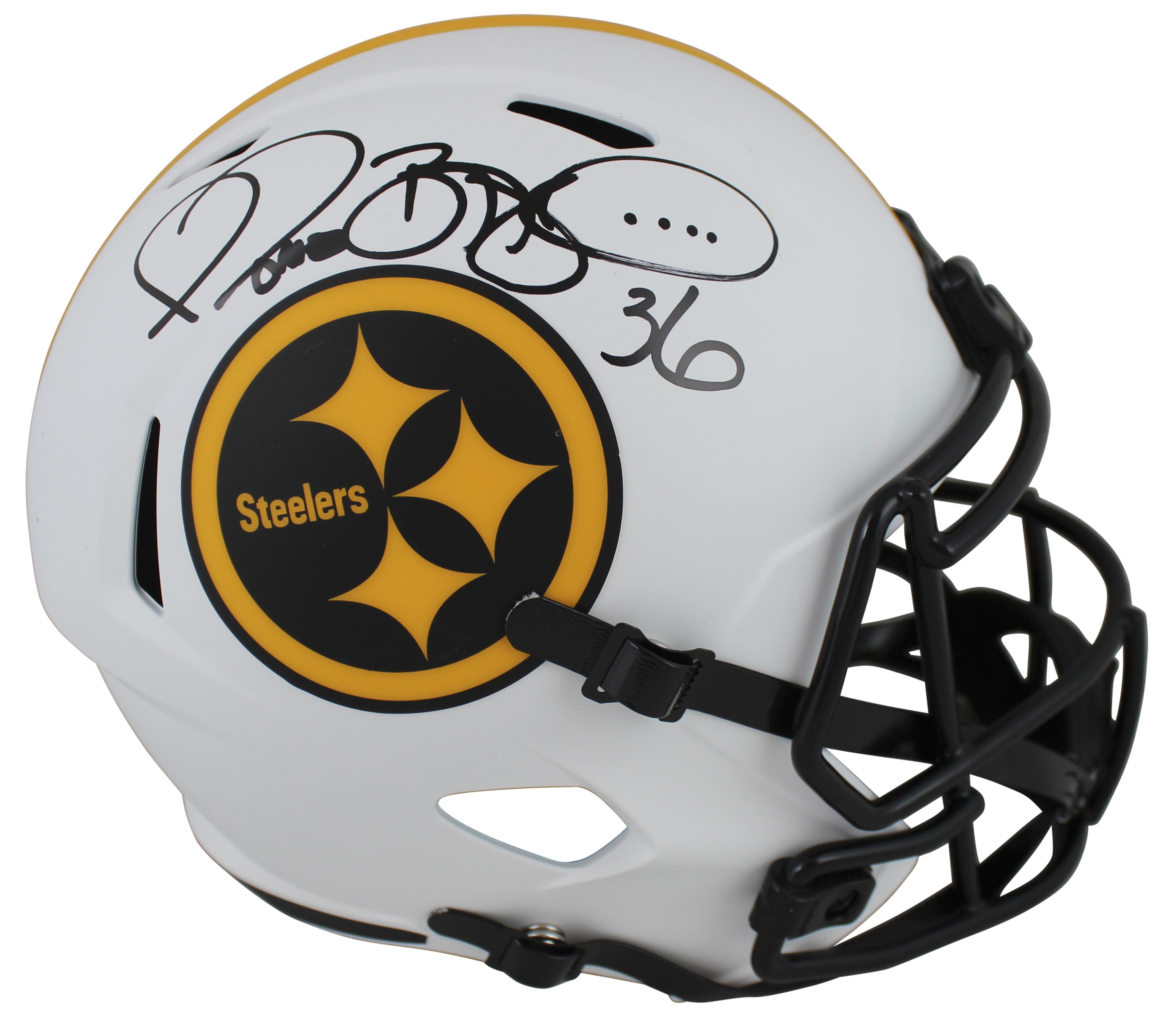 Riddell Pittsburgh Steelers full-size Lunar Eclipse alternate speed replica helmet has been hand-signed by Jerome Bettis (HOF). The display case is included as shown.