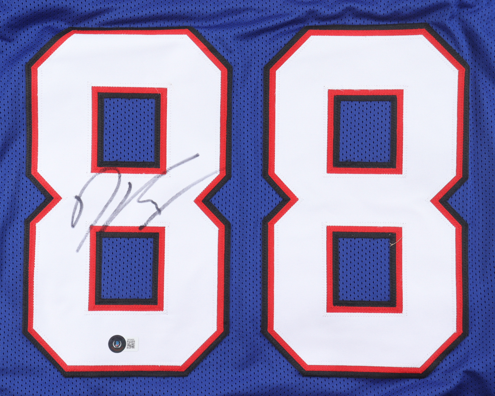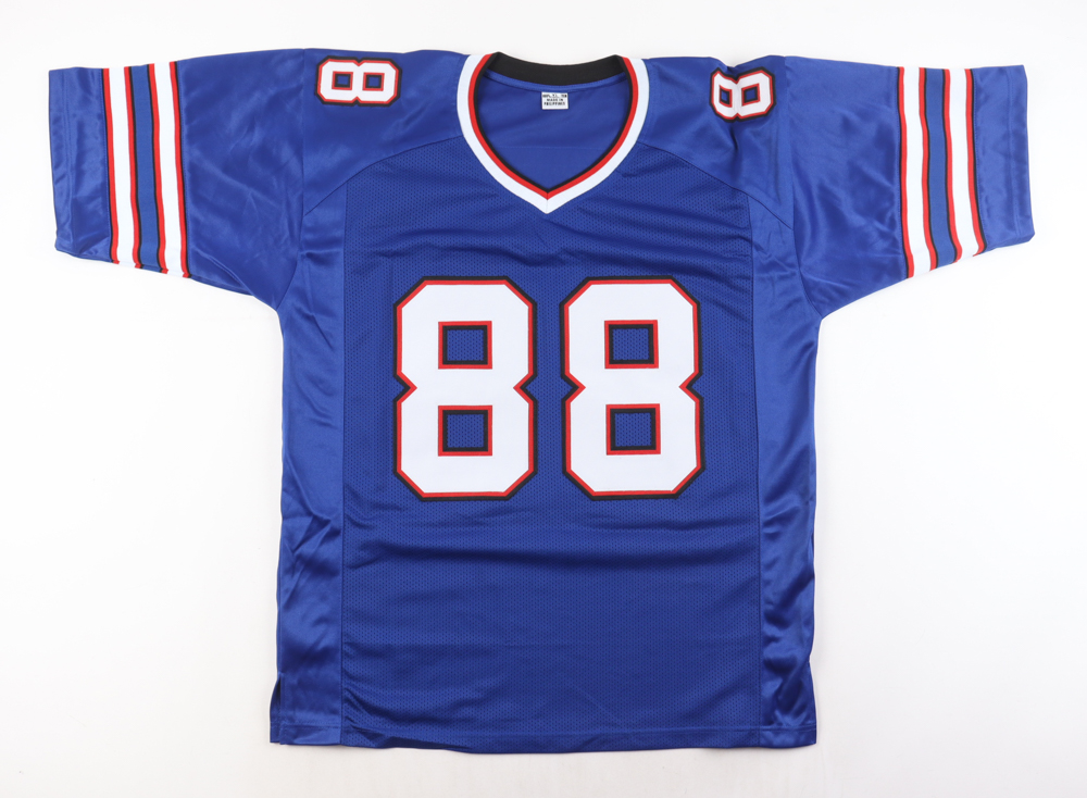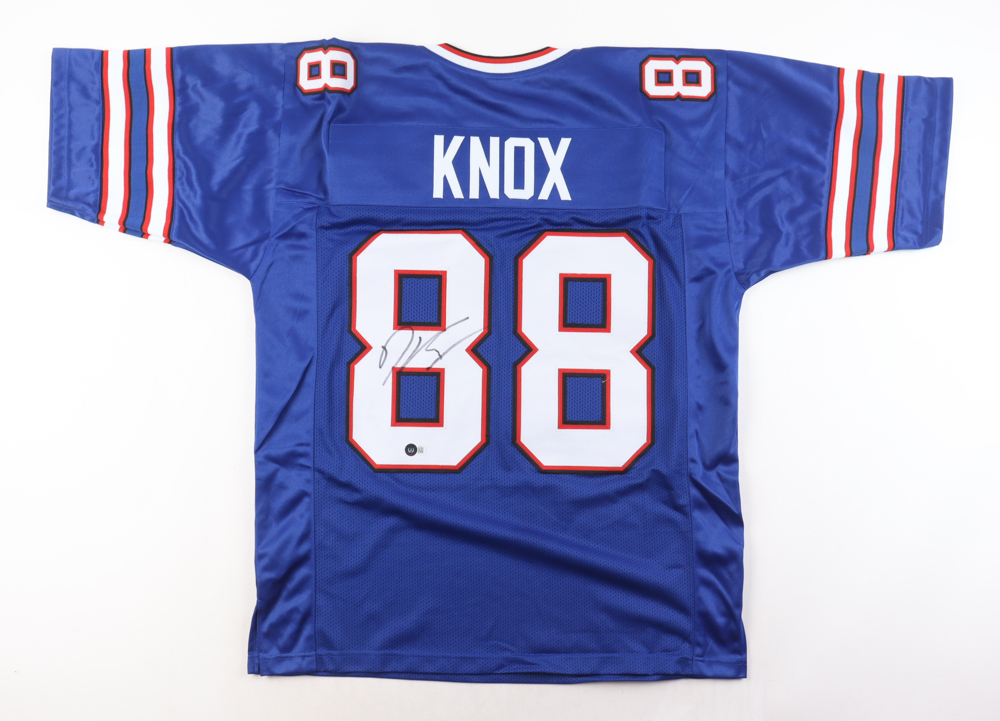 Custom football jersey. Everything sewn on, size XL. Hand-signed by Dawson Knox.