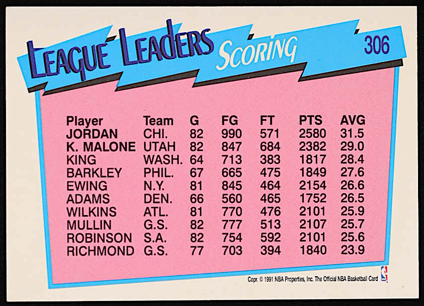 Michael Jordan / Karl Malone 1991-92 Hoops #306 Scoring Leaders