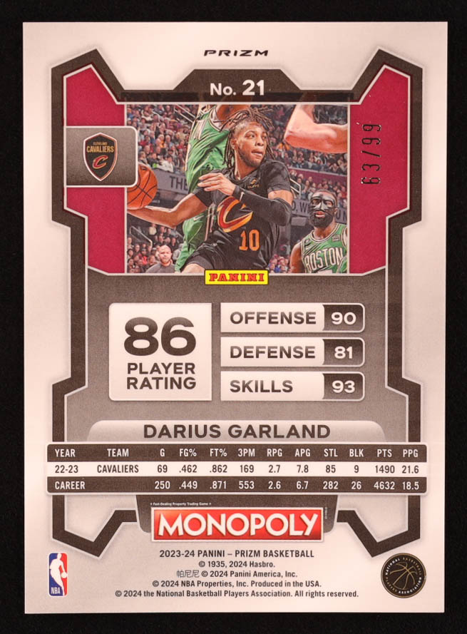 Darius Garland 2023-24 Panini Prizm Monopoly Red #21 #63/99