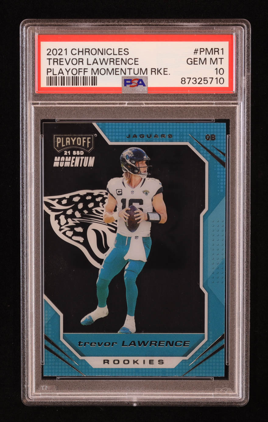 Trevor Lawrence 2021 Panini Chronicles Playoff Momentum Rookies #1 RC (PSA 10)