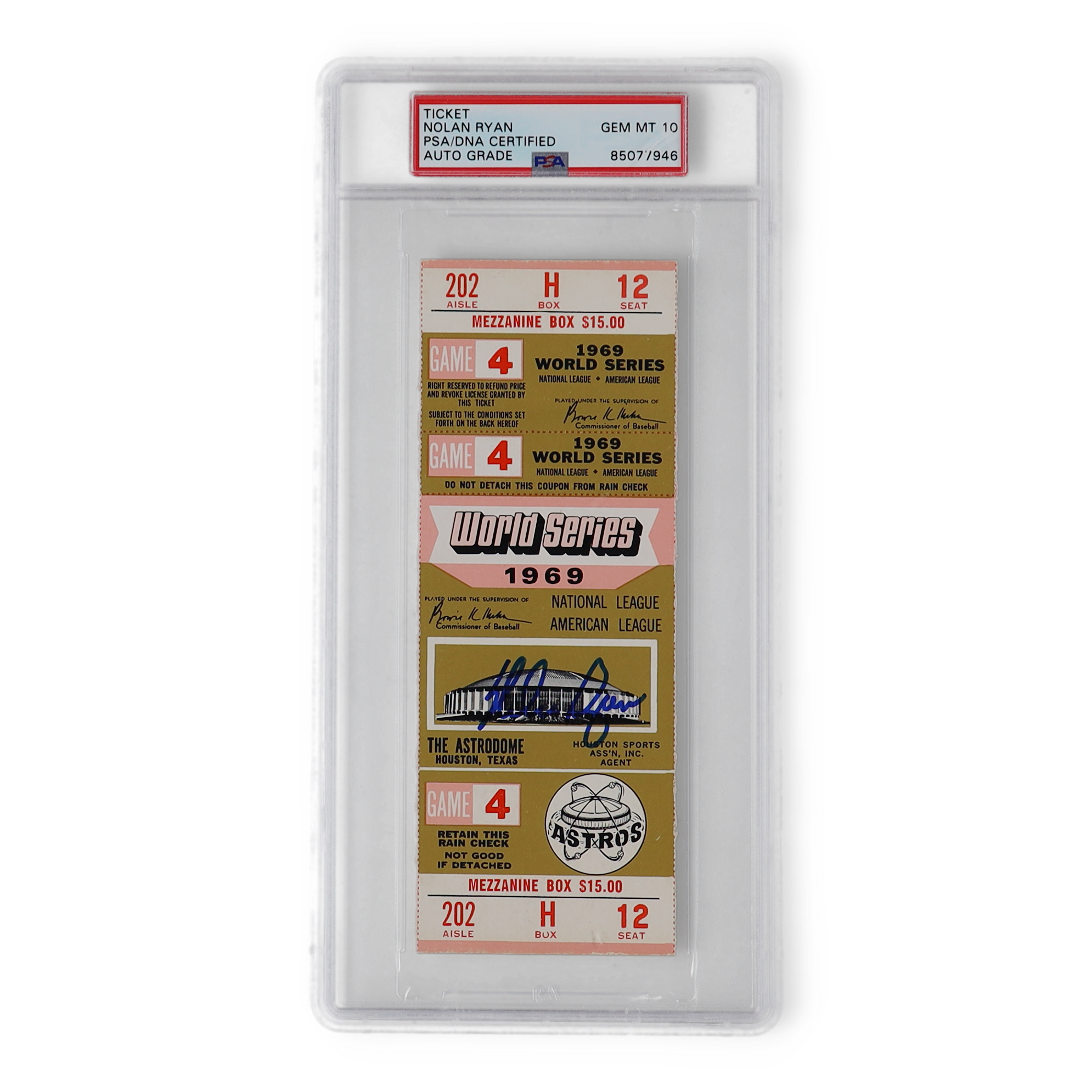 Nolan Ryan Signed 1969 World Series Game 4 Ticket (PSA | Auto 10)