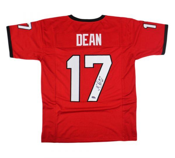 Custom style jersey with everything sewn on, size XL. Hand-signed by Nakobe Dean.