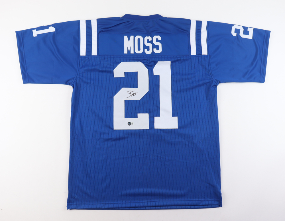 Custom jersey with everything sewn on, size XL. Hand-signed by Zack Moss.