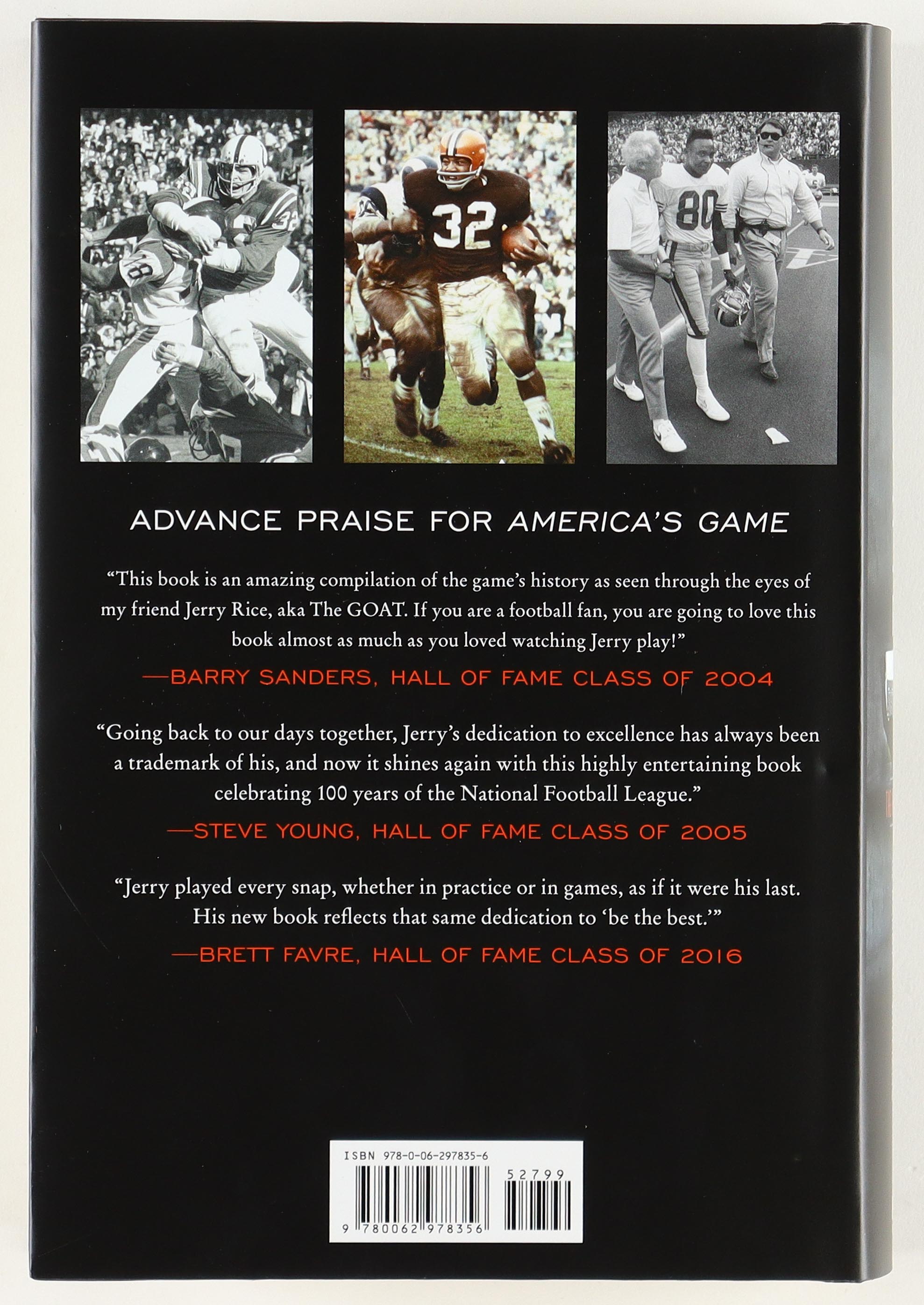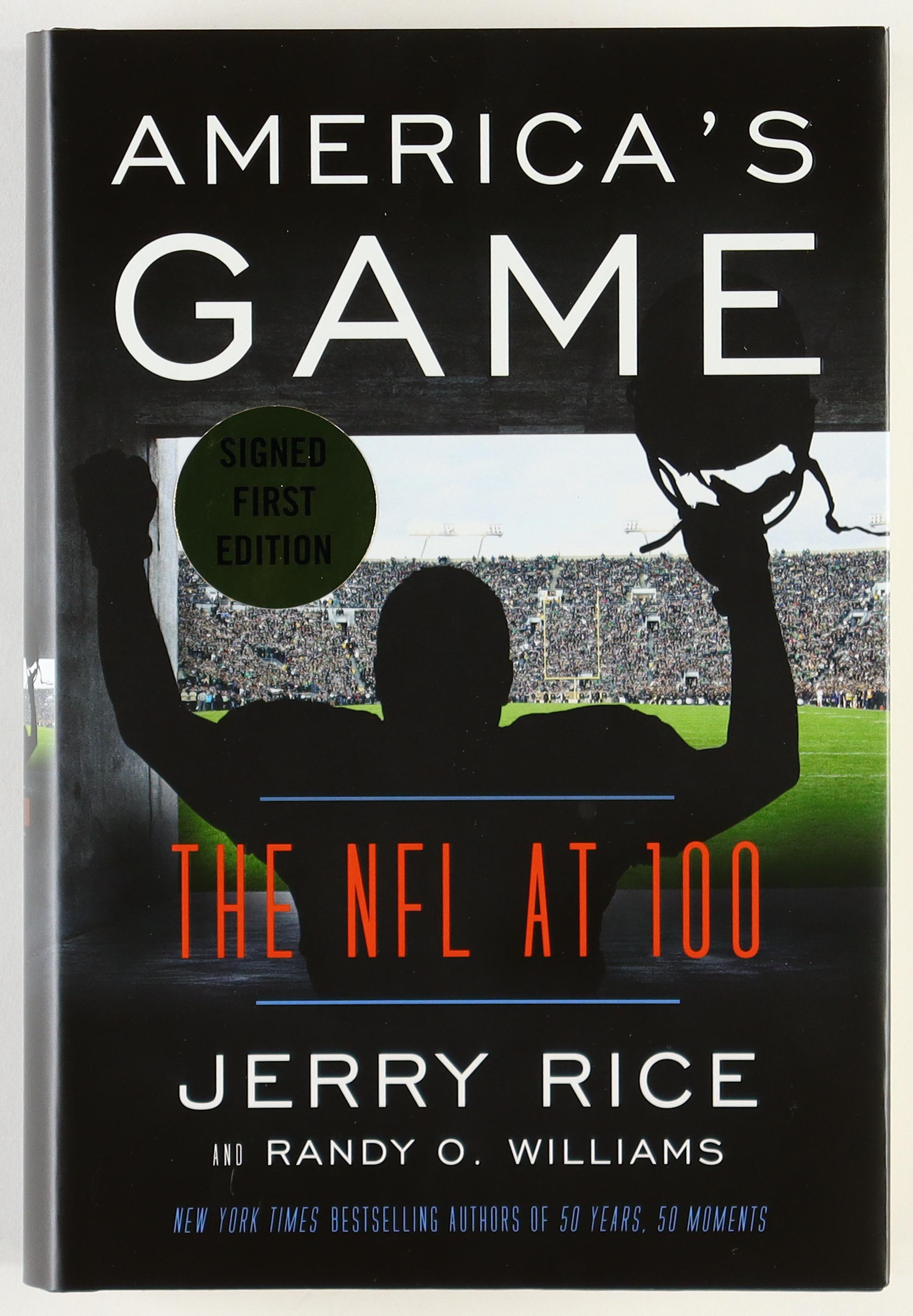 "America's Game: The NFL At 100" hardcover book. Hand-signed on the title page by Jerry Rice (San Francisco 49ers, HOF).