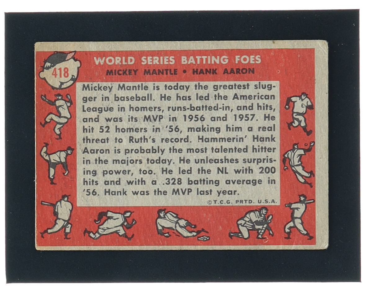 Mickey Mantle / Hank Aaron 1958 Topps #418 World Series Batting Foes