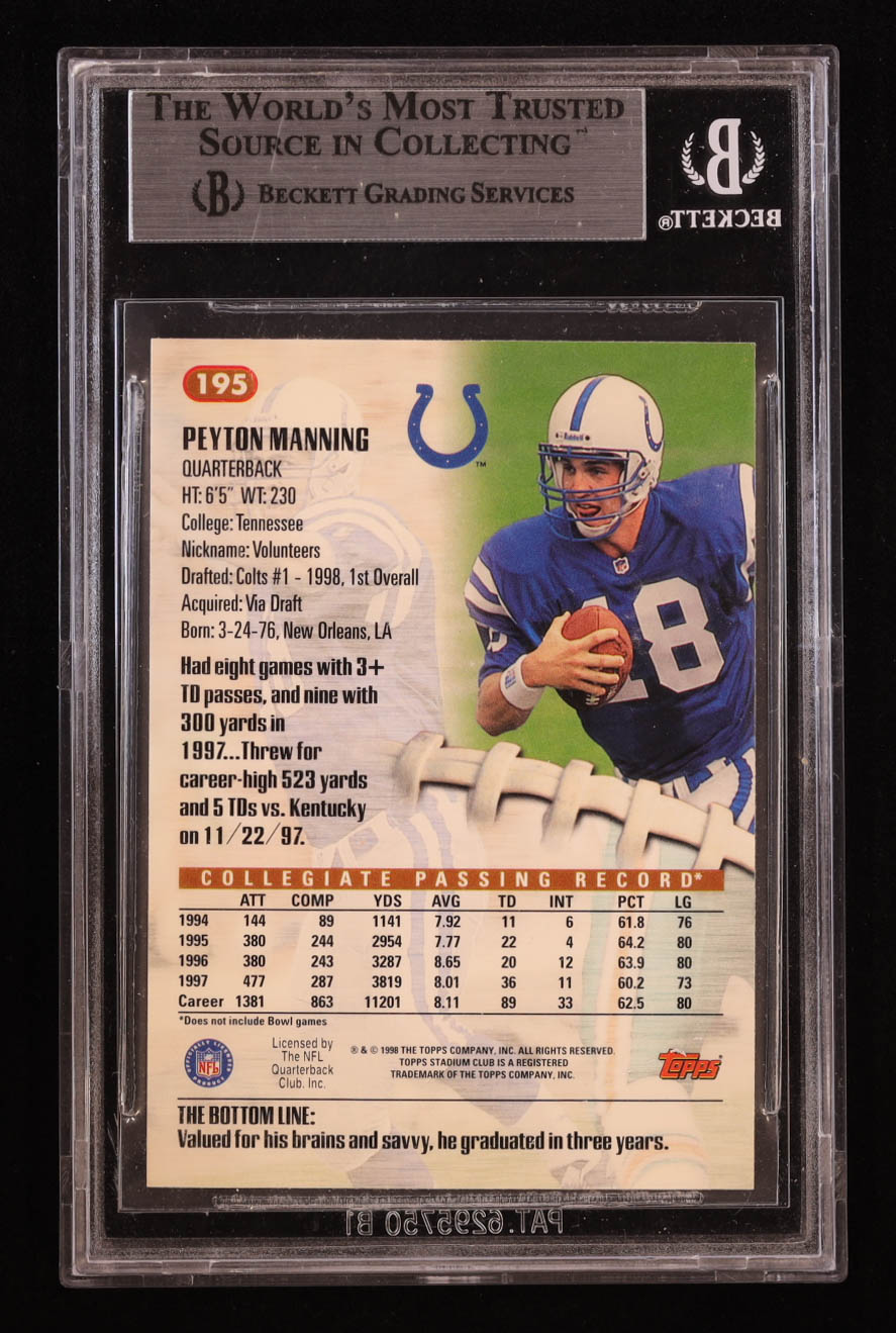 Peyton Manning 1998 Stadium Club #195 RC (BGS 9)