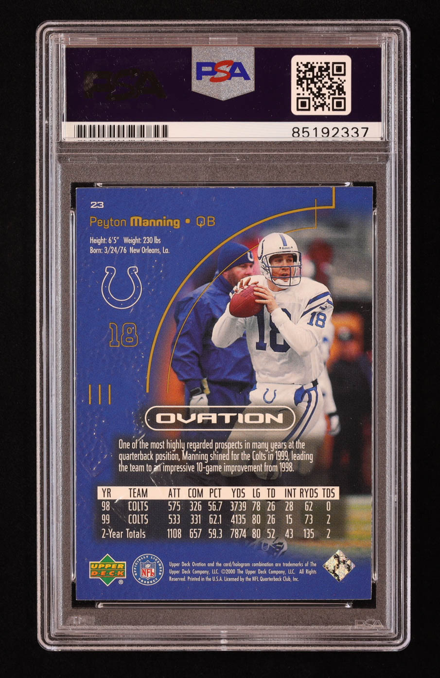 Peyton Manning Signed 2000 Upper Deck Ovation #23 (PSA)