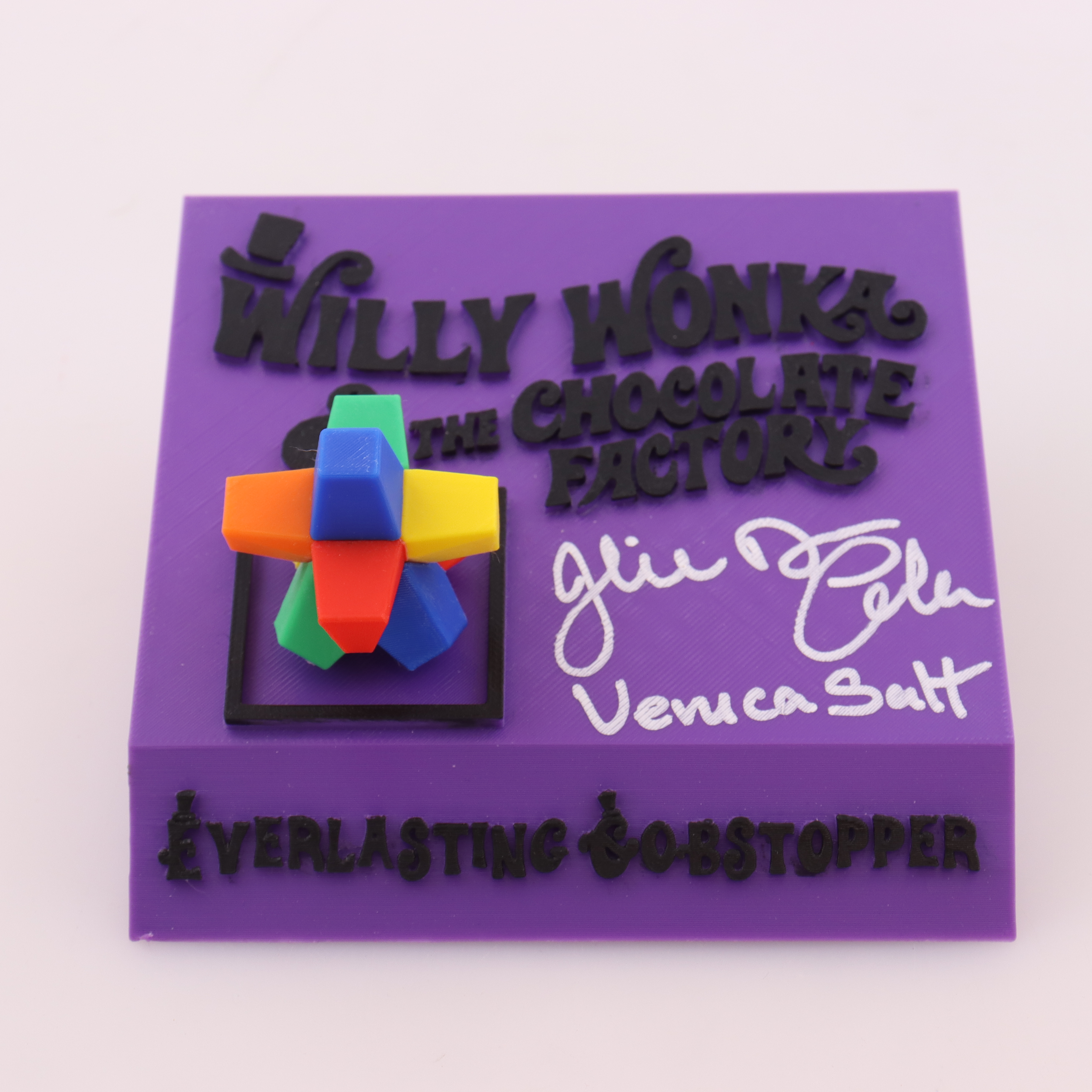 "Willy Wonka & the Chocolate Factory" Everlasting Gobstopper plastic replica display. Measures approximately 5"x5"x2.5" in dimension and has been hand-signed and inscribed by Julie Dawn Cole (Veruca Salt).