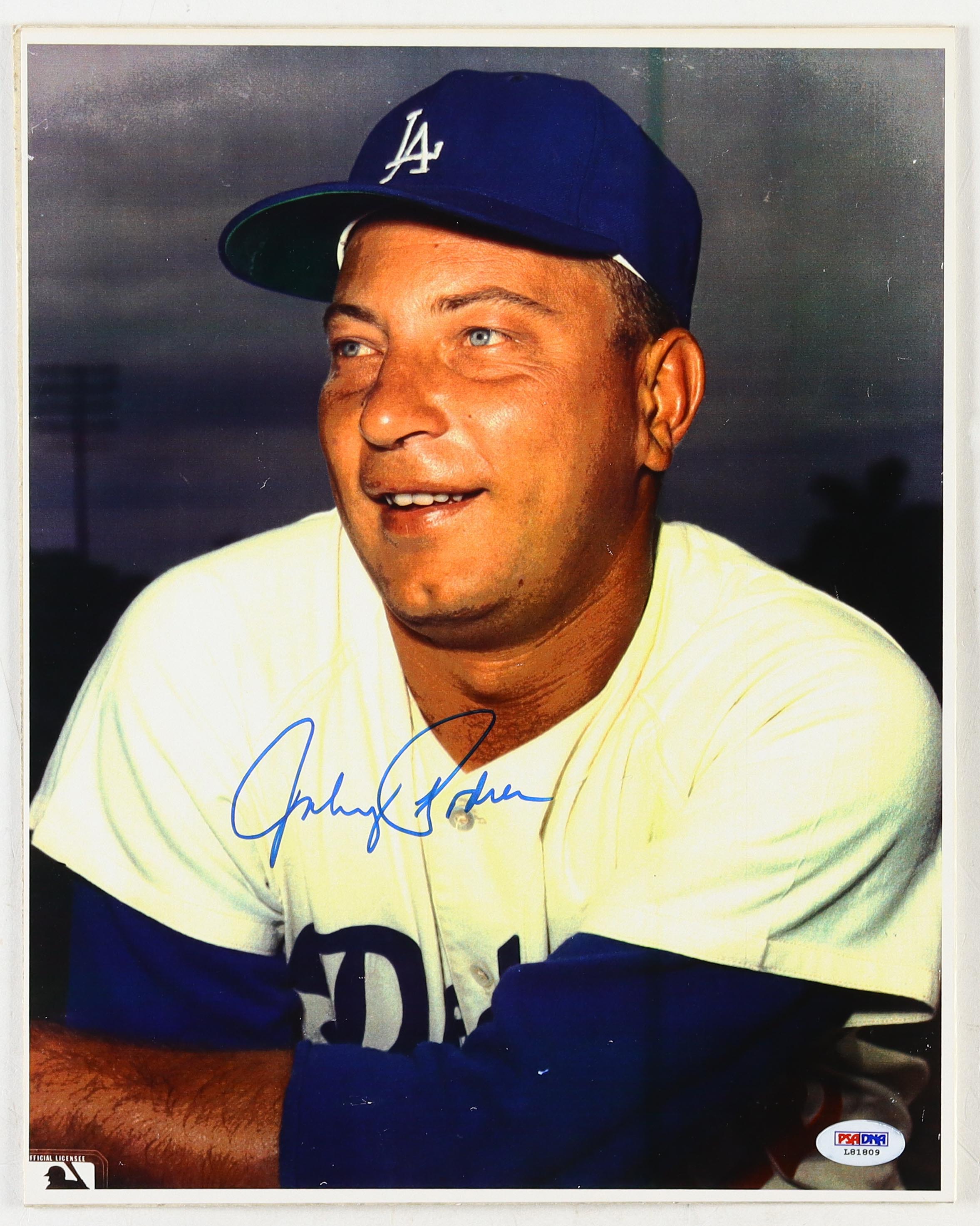 Johnny Podres Signed Dodgers Custom Matted Cut (PSA)